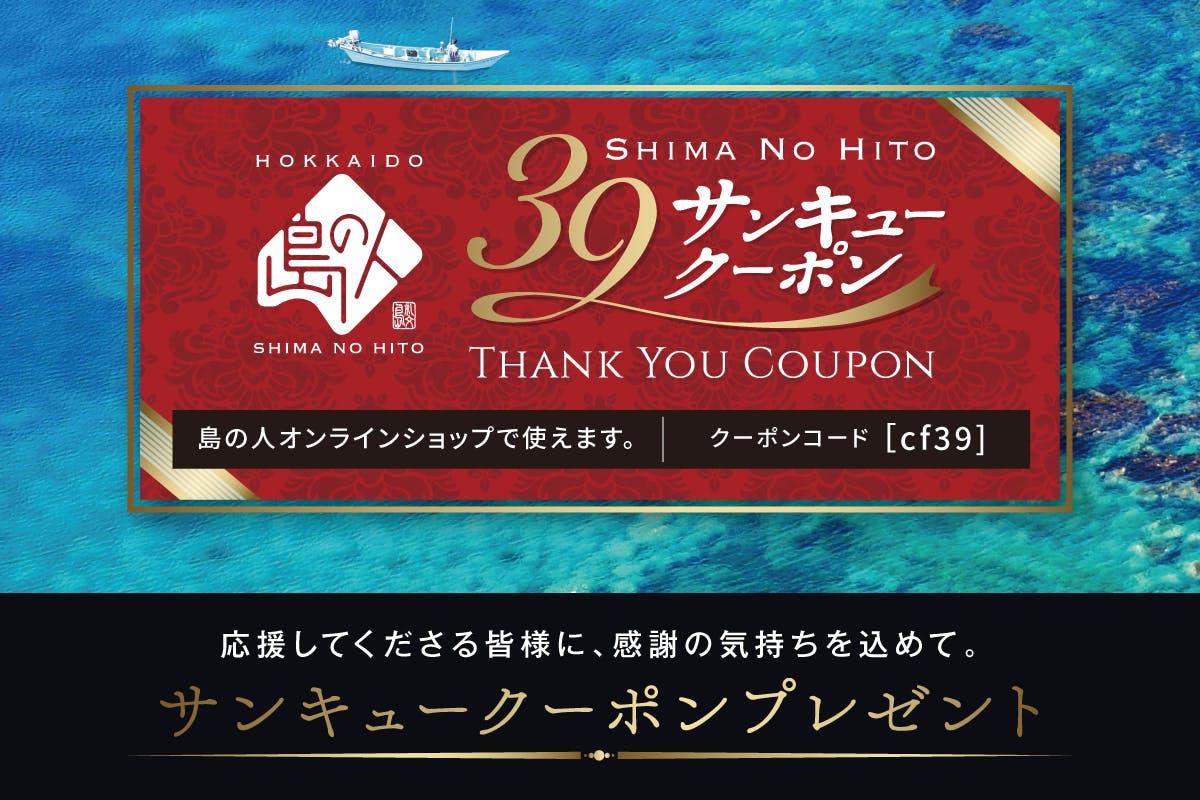 2020/09/14 21:22皆さんこんにちは!【島の人】です。皆様のご支援のおかげで目標金額を達成致しました!本当にありがとうございます。次は200万を目指しております。引き続きご支援の程宜しくお願い致します。さて、今回はご支援頂いた方々に【島の人オンラインショップ】で使えるクーポン券を限定配布致します!なんと期限は無し!!「美味しい海鮮が食べたい。」「北海道の海鮮を送ってあげたい。」などございましたら是非お使い下さい!200万達成の暁には何か他のキャンペーンをやってみたいです。。クーポンの使用方法は以下のURLをクリックするだけになります。https://ssl.aispr.jp/rebun/member/coupon/freecoupon.html?coupon_id=9581717881今後も私たち【島の人】のご支援を宜しくお願い致します!島の人オンラインショップはコチラ!https://shop.rebun.jp/ もっと見る