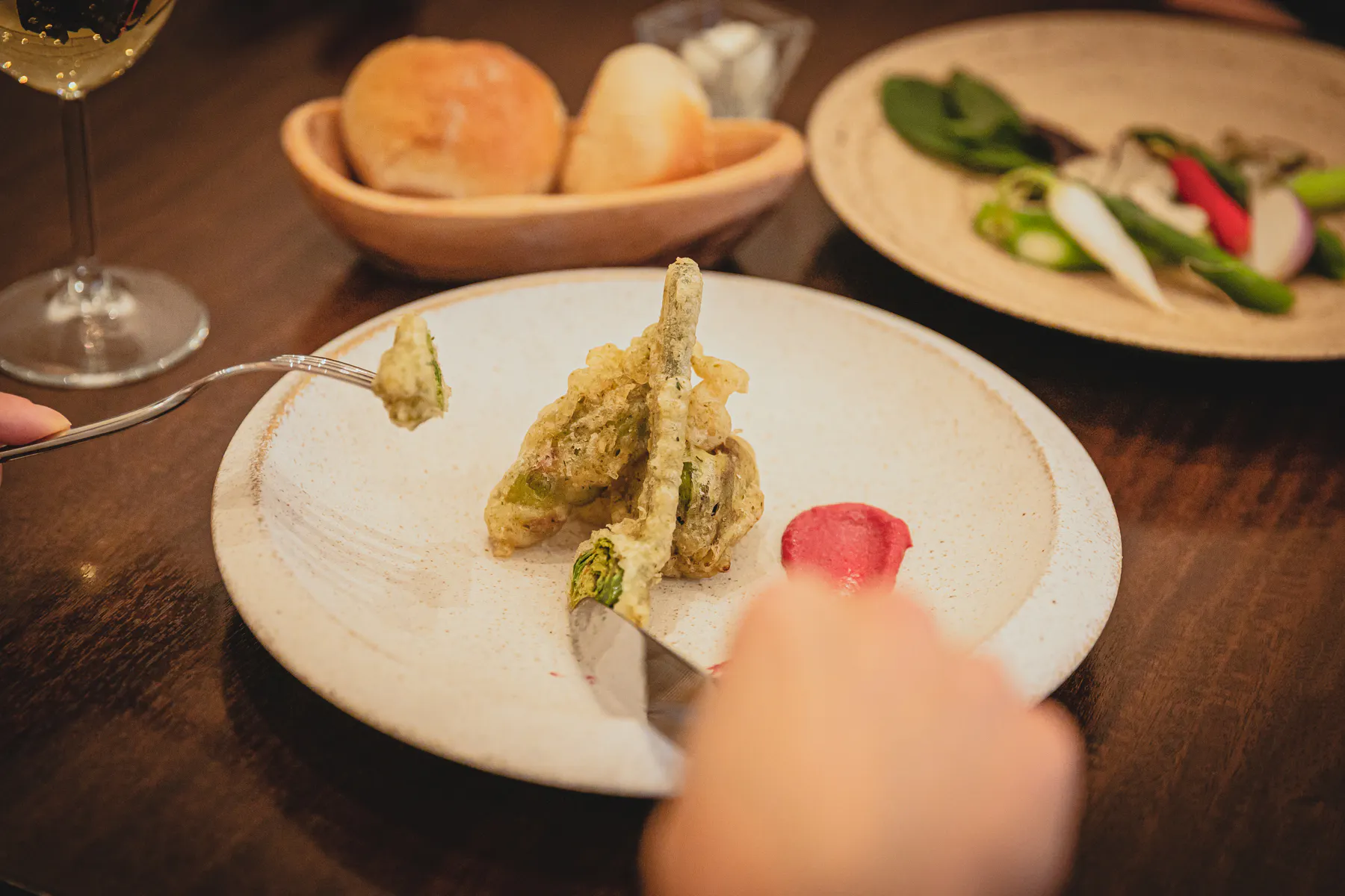 旬の野菜の素材感と野菜の旨味を引き出した料理が織り成すコース、食べ終わった後に「野菜だけだったんだ」と満足を感じて頂けるクオリティーです。