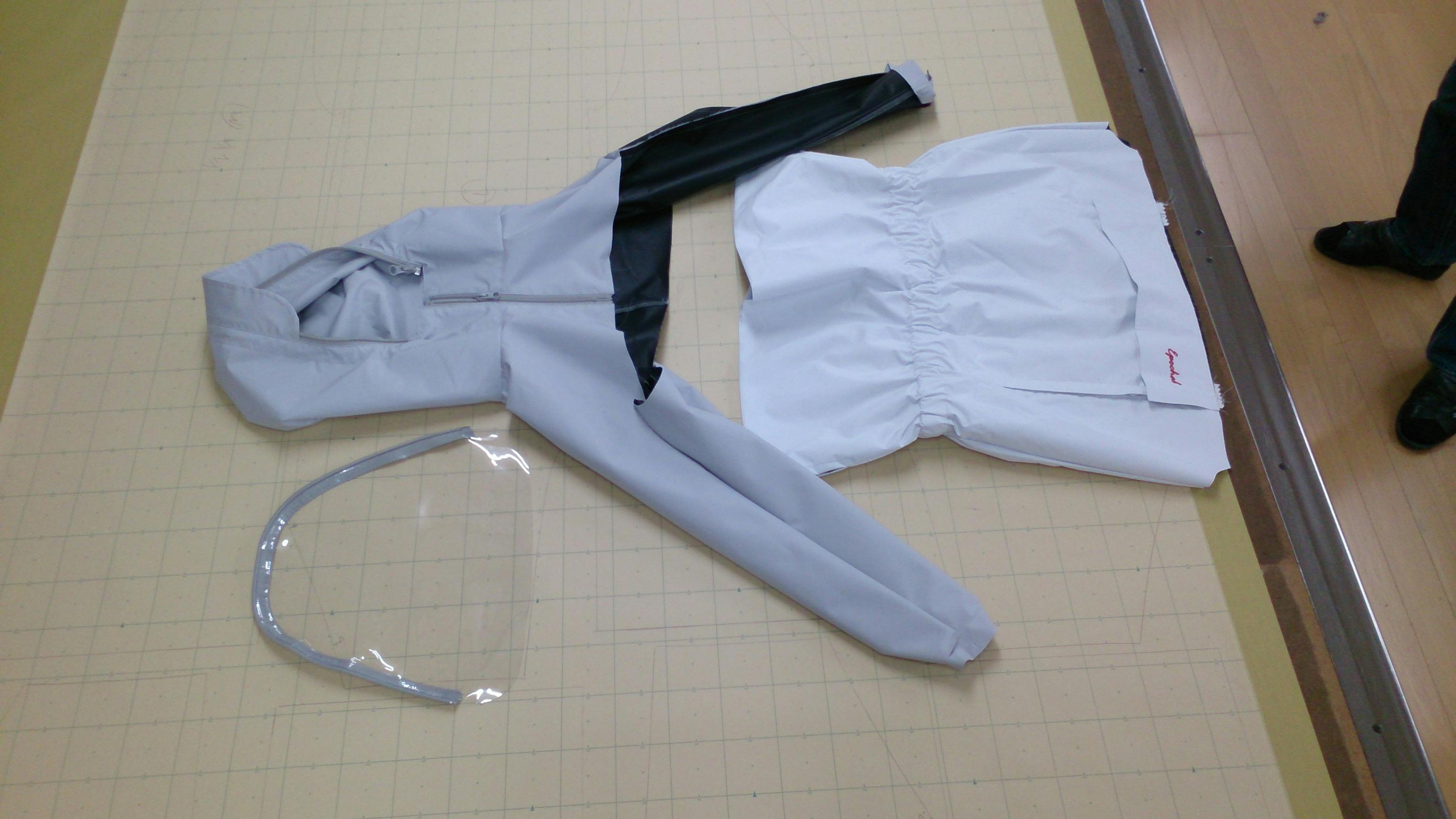 今回は、特許を持っておられる㈱空調服さんのご指導をいただきながらデザインした防護服、「空調装置」を付けるところ、空気を吸い込むファンについてなど特許を持っておられます。