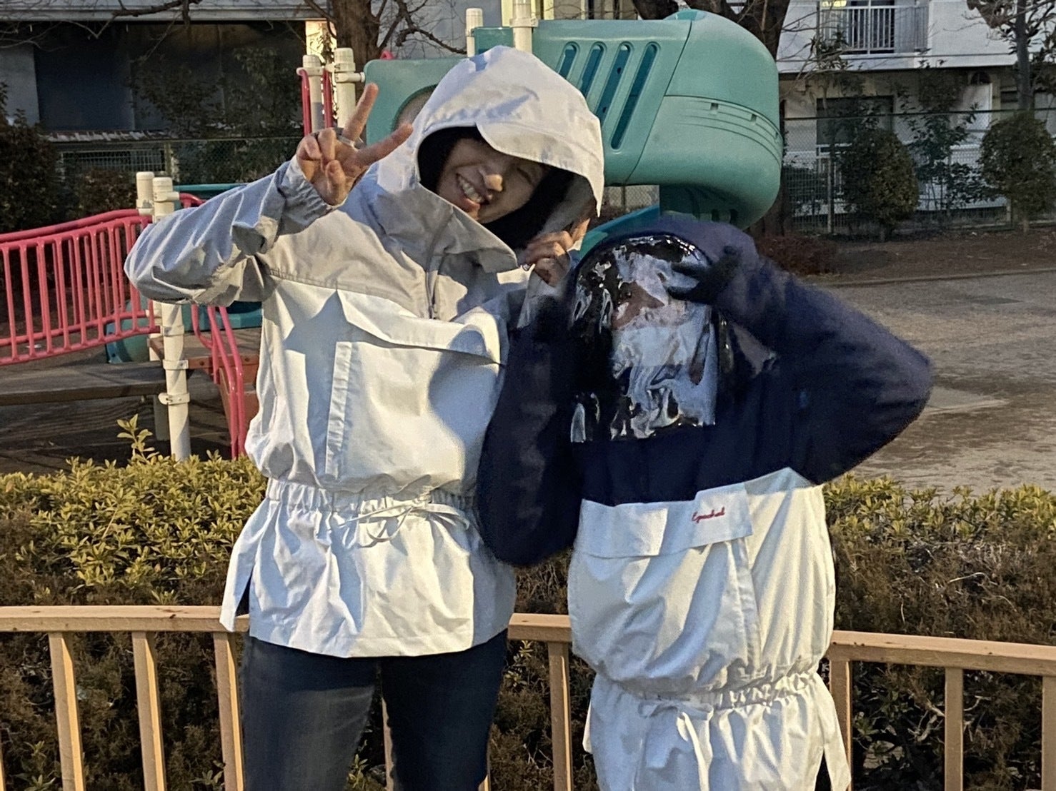 このケープ、なんと大人の小柄な人も着用できることがわかりました。