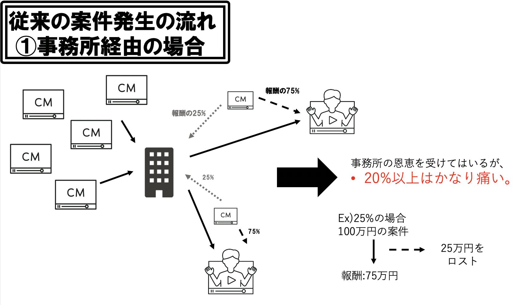 →実は代理店(事務所)が所属配信者に案件をマッチングさせた時、実際に見る報酬額のほとんどが