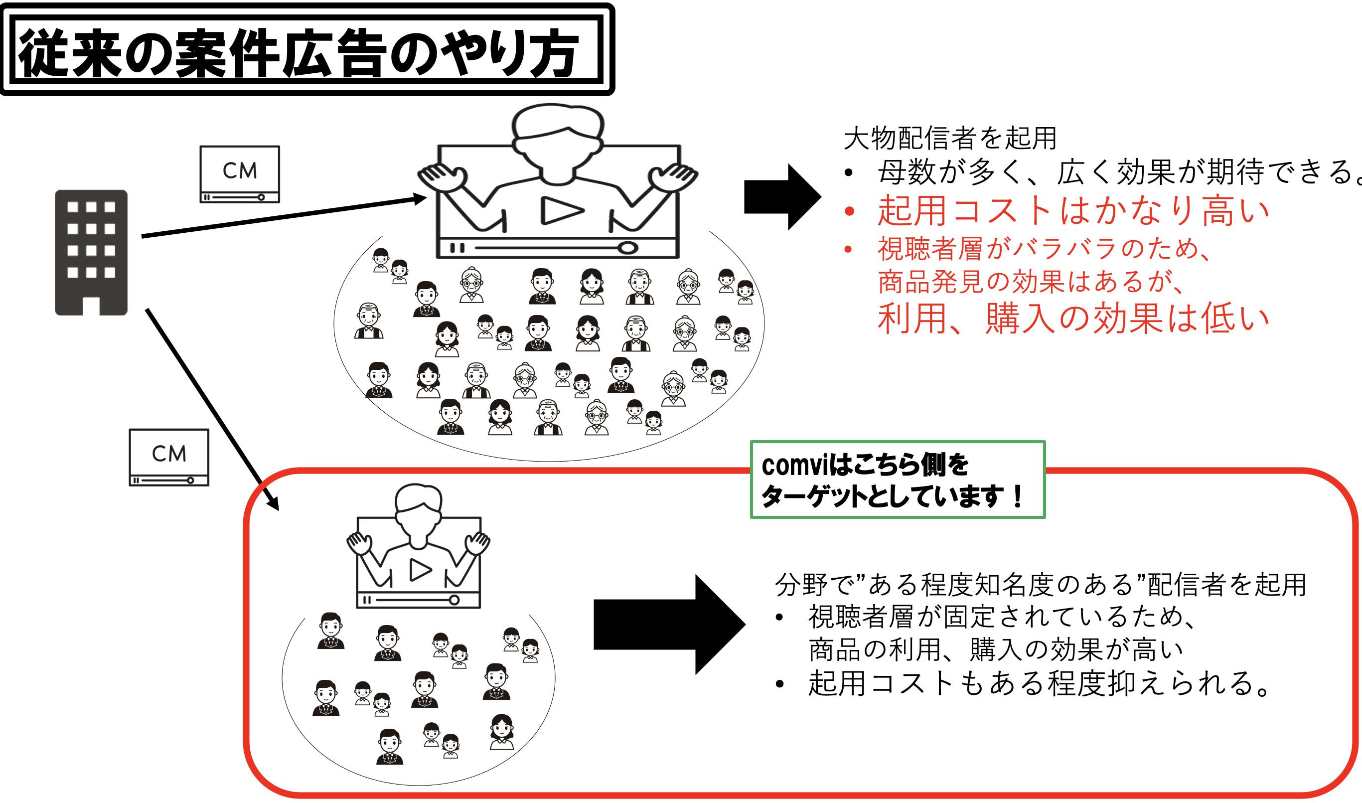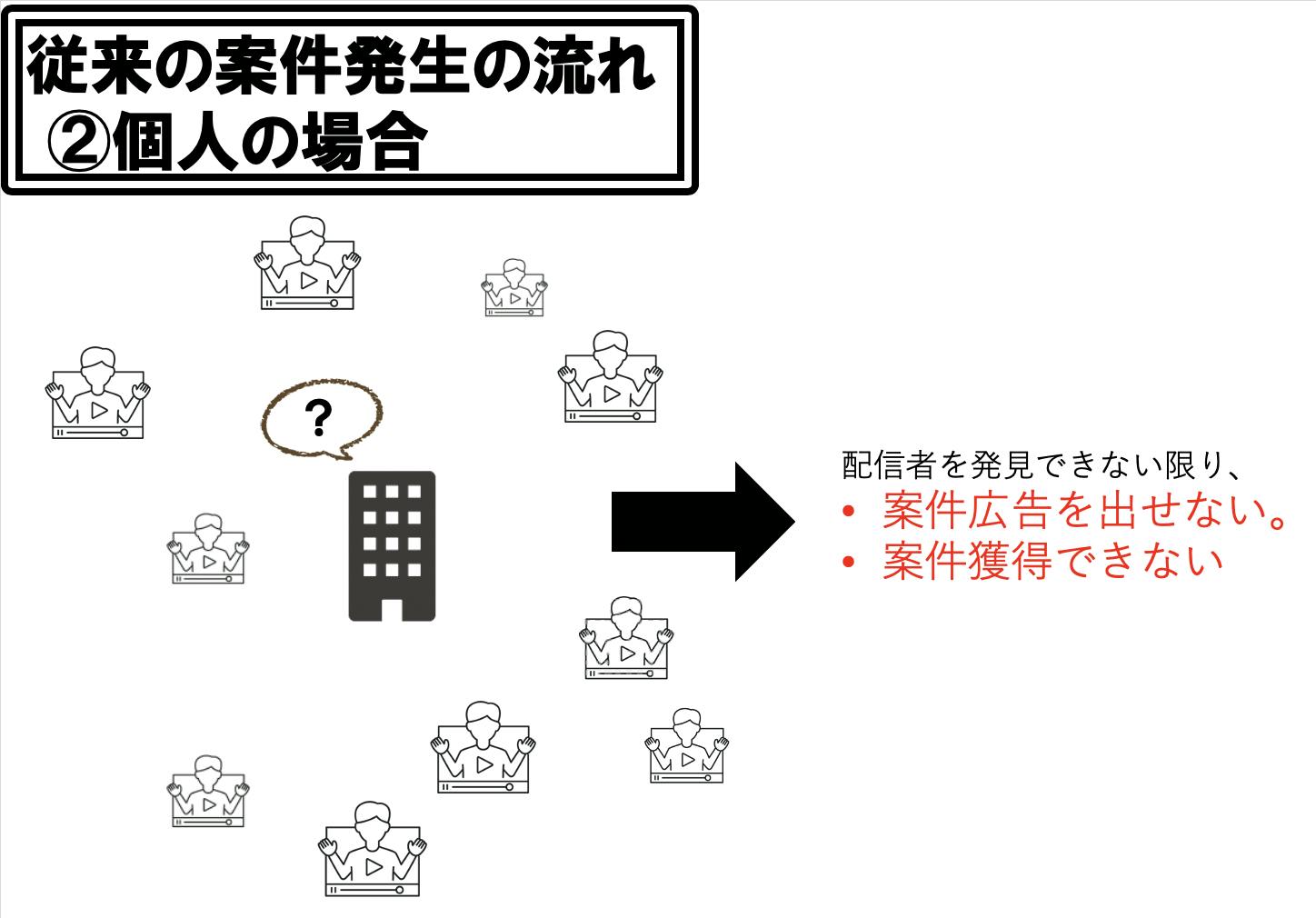 具体的に、配信者と企業との"ニッチ戦略型"マッチングサービスを作り上げます。