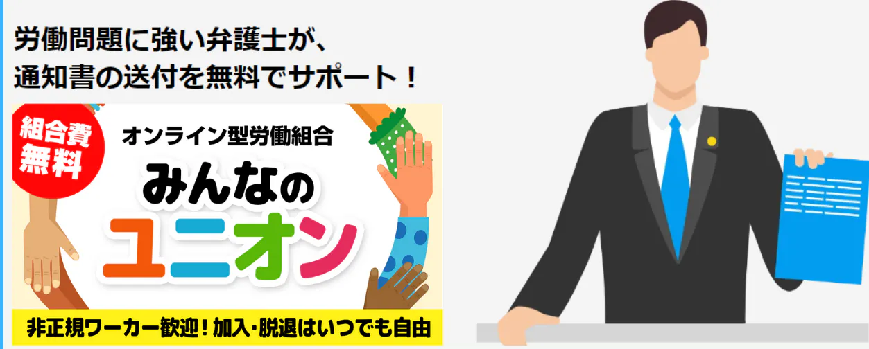 「みんなのユニオン」では、被害報告をしていただいた組合員が所属する会社に【調査と是正を要求する通知書】を無料で送っています。