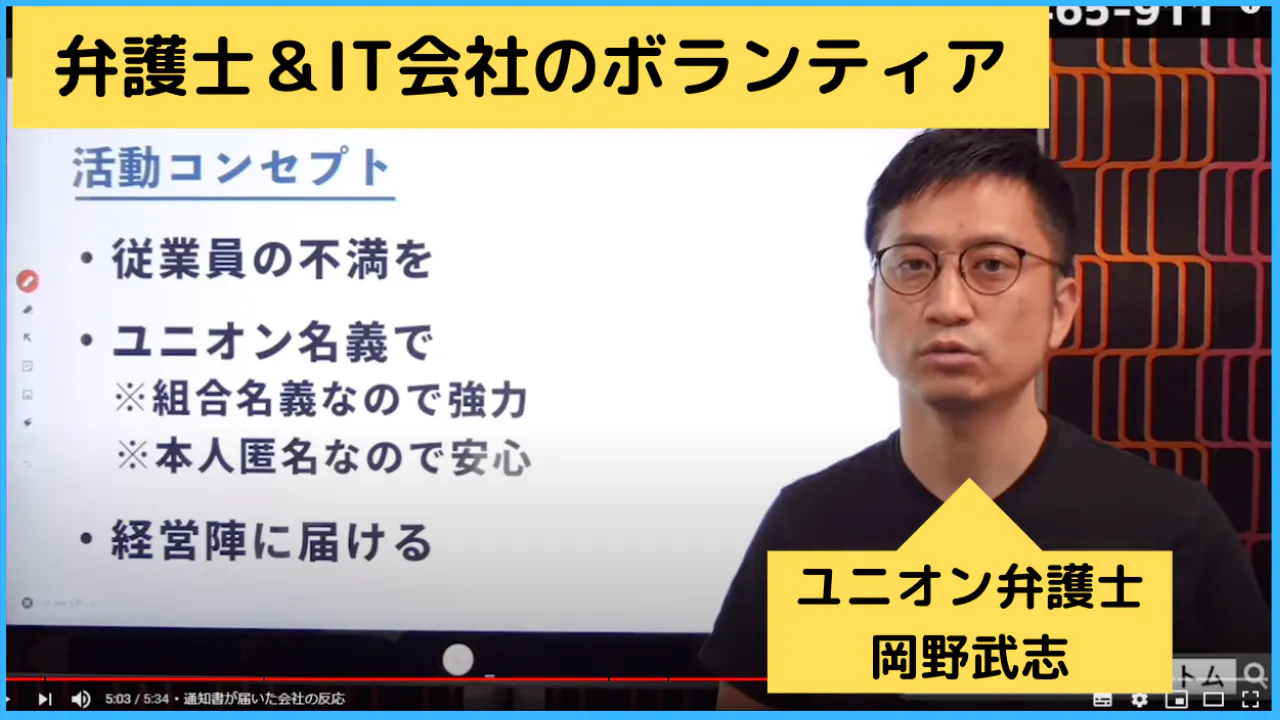 という特徴があり、弁護士法人とIT企業がボランティアで活動している労働組合です。