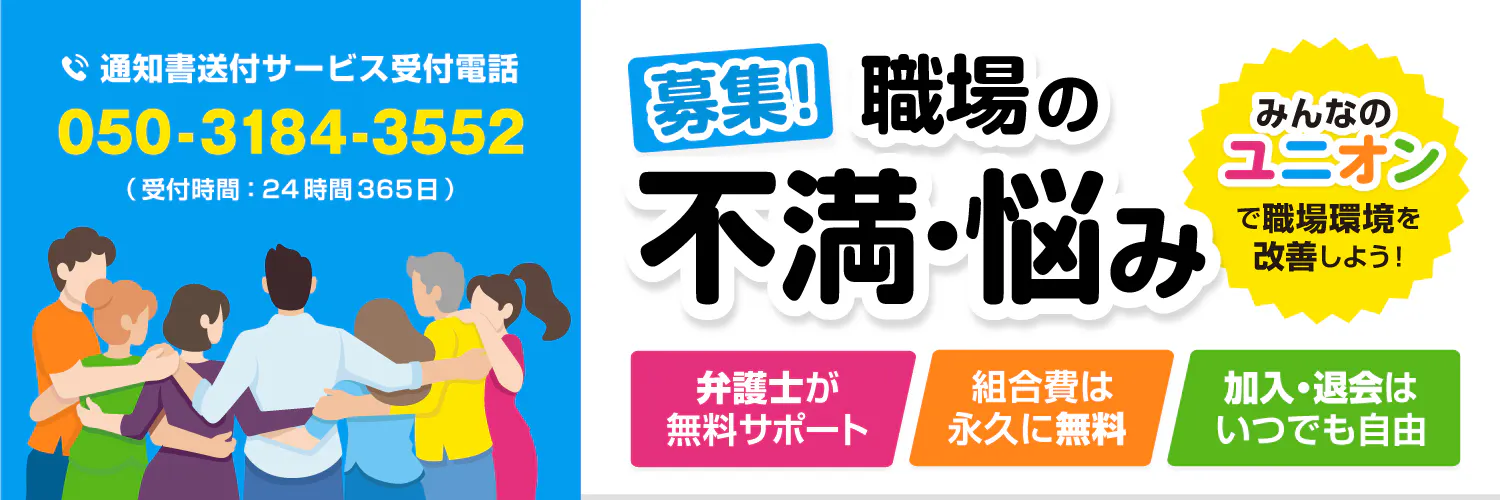 「みんなのユニオン」では、職場で辛い思いをした組合員が所属する会社に【調査と是正を要求する通知書】を無料で送っています。