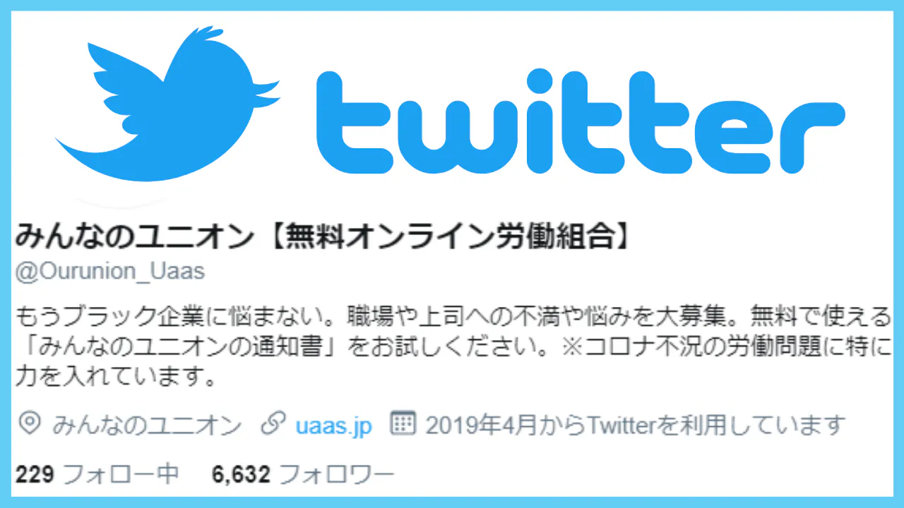 約6600人のフォロワーがいる、みんなのユニオン公式Twitterで【希望者のお名前】等を紹介させていただきます!