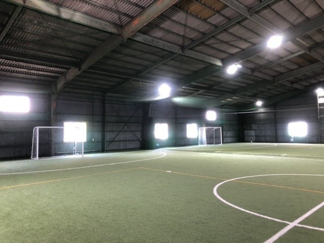 なんと言っても広さと屋根付きという抜群の環境です!広さはフットサルコート4面、屋根もあるので雨の日や風の強い日でも問題なくプレーできます。 また最新の人工芝なのでプレー中の身体への負担を減らせます。 扉や窓も多くあるので換気も良く、駐車場も40台(無料)です!!