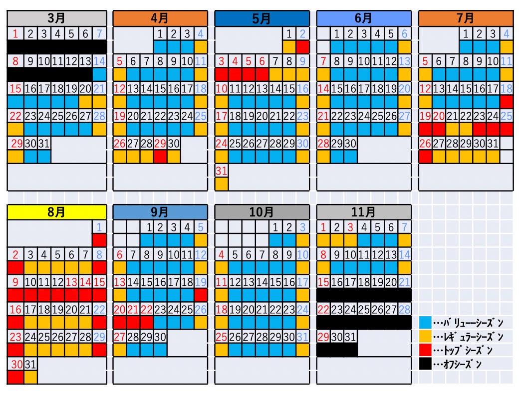 ↓キャンプ場のシーズン表