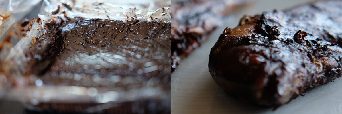 小菅村養魚場養殖の山女魚の内臓を取り除いた後、頭とお腹に10年熟成した味噌をつめて3・4日漬け込んで冷凍しています。お召し上がり時は、網焼きまたはフライパンで味噌が少し焦げる程度によく焼いてください。