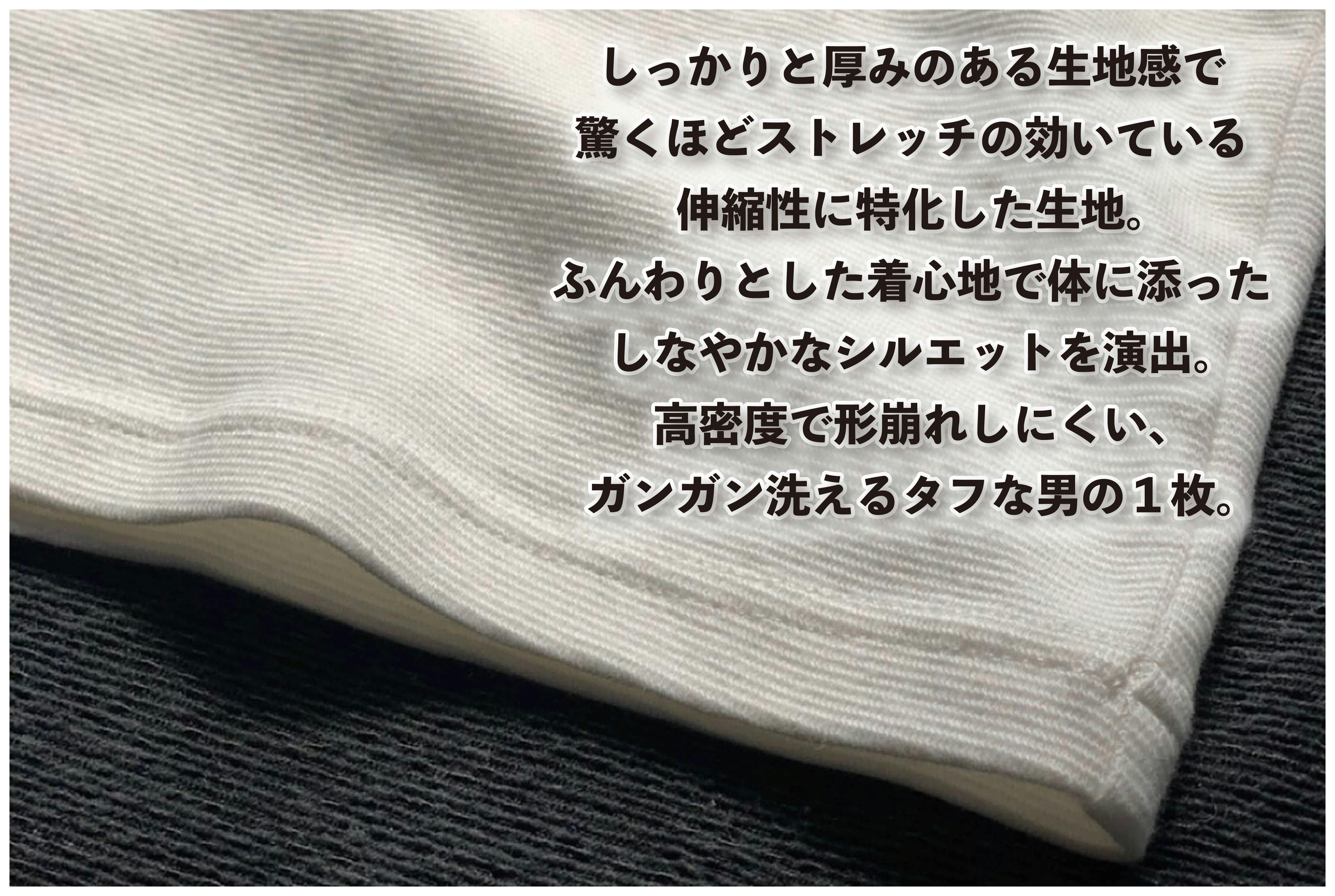 しっかりと厚みの生地感。高密度で形崩れしにくい、ガンガン洗えるタフな1枚。