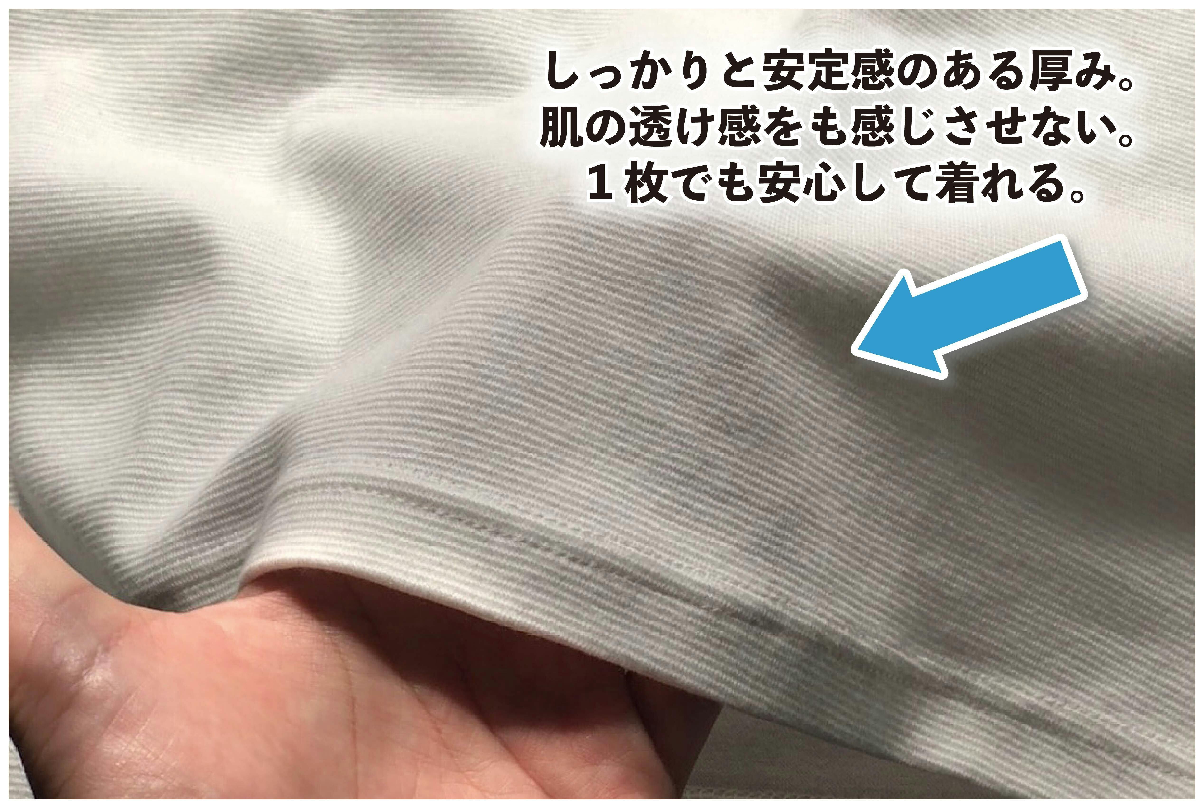 透け感を感じさせない安定感のある厚み。1枚で着れる大人のエチケット。