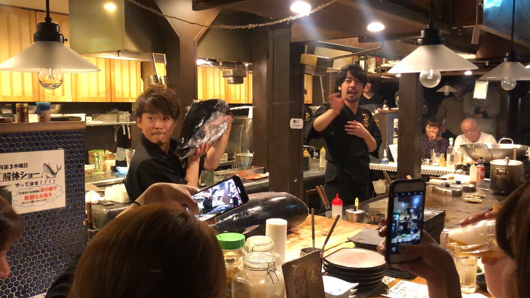 お客様と一体になって盛り上がる「マグロの解体ショー」