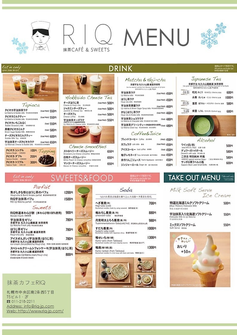 私たちは、北海道札幌市にある、抹茶カフェ&スイーツRIQです。