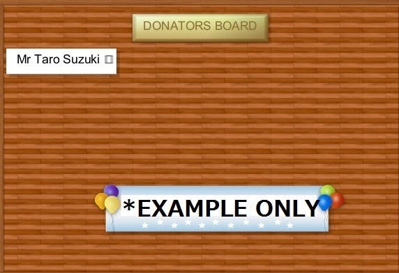 支援して頂いた方は、校内の支援者掲示板に支援者のお名前と出身地を表示致します。