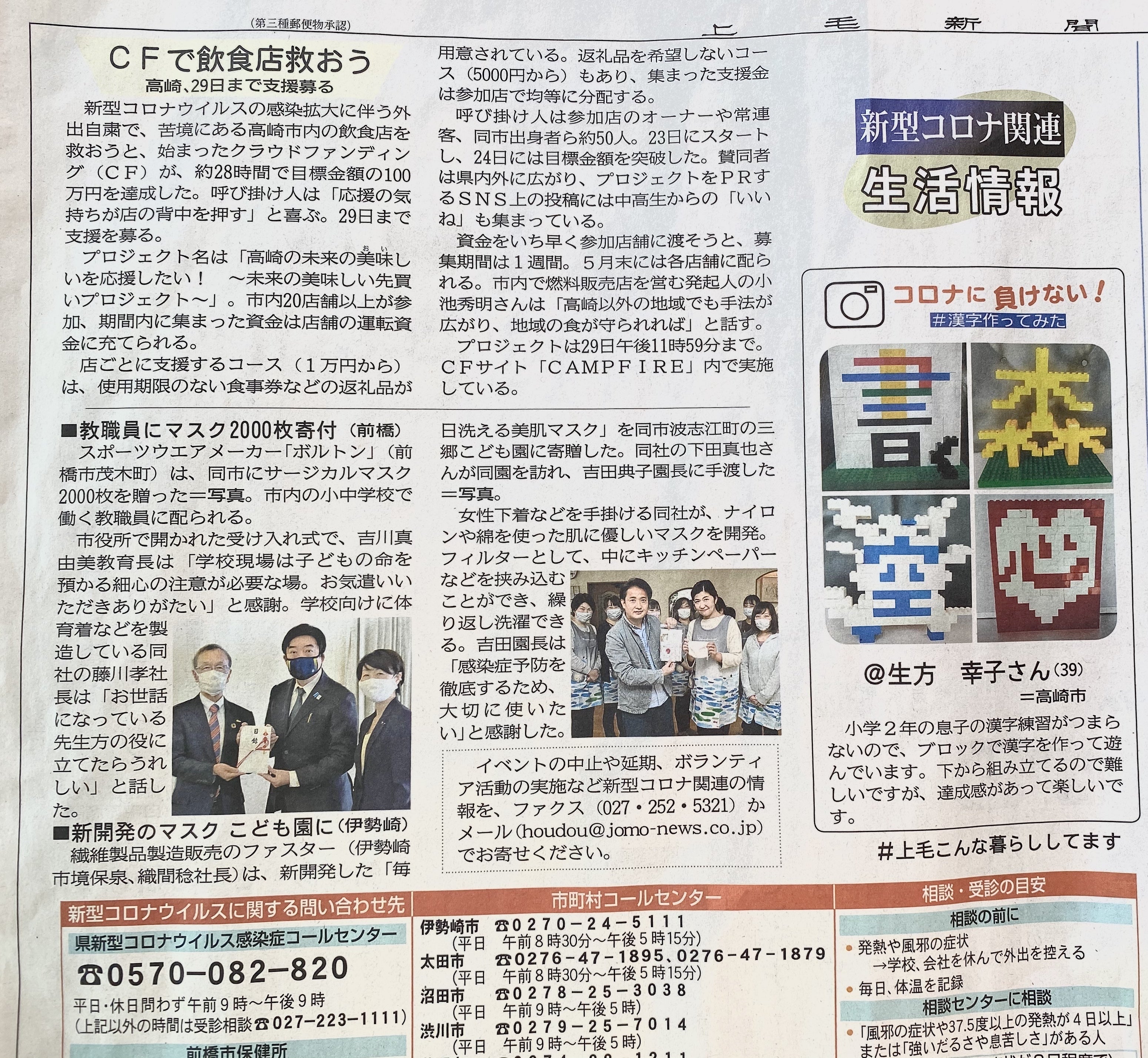そして、みなさんのご理解ご協力のもと進めてきたこの取り組みが本日4月27日の上毛新聞朝刊にも掲載されています。