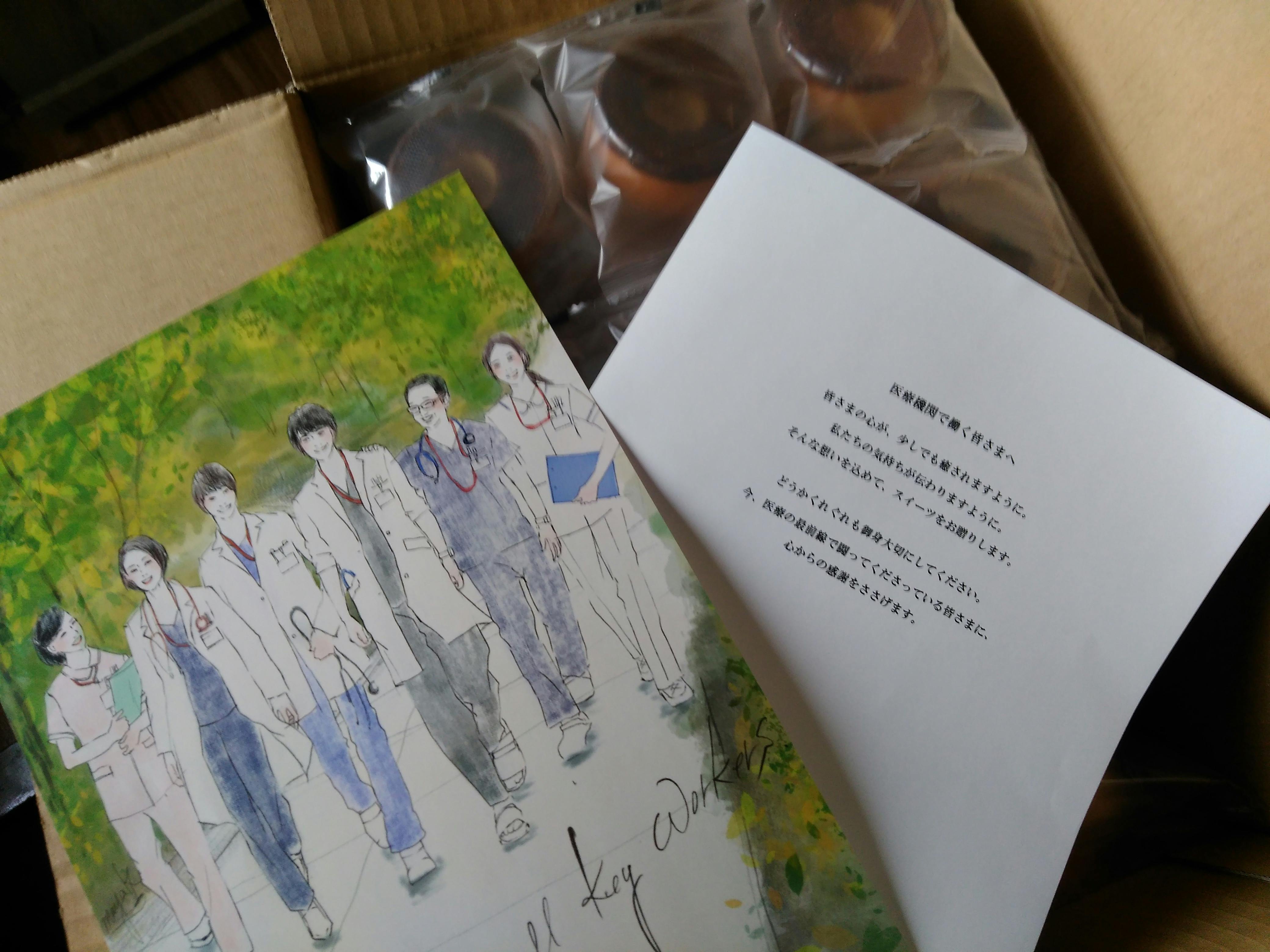医療機関で働く方々の心が、少しでも癒されることを願いながら梱包しています。