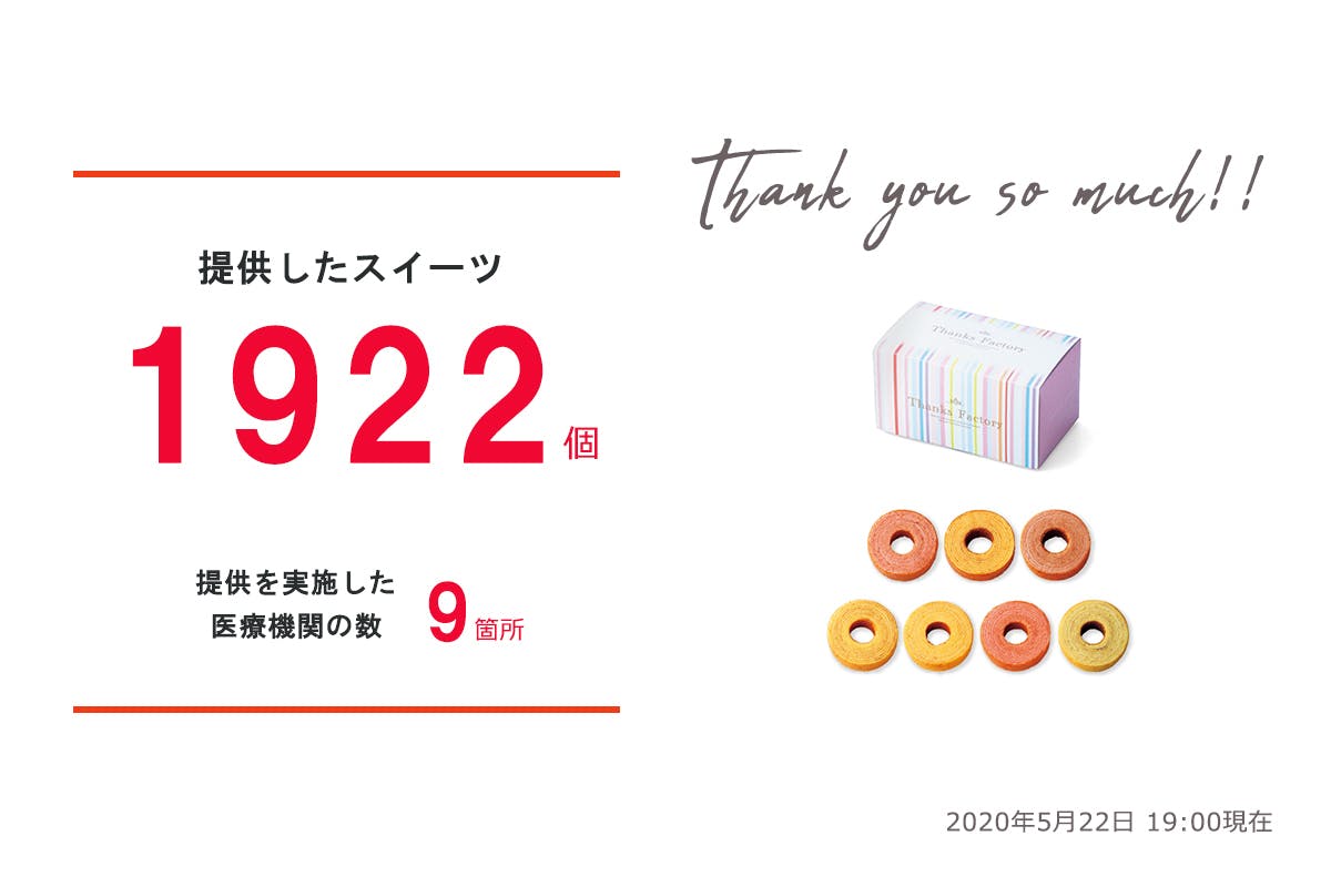 ご支援くださったみなさんのおかげで2000個近いスイーツのフードロスを防ぐことができ、さらに、たくさんの医療従事者の方々へ感謝を届けることができています!