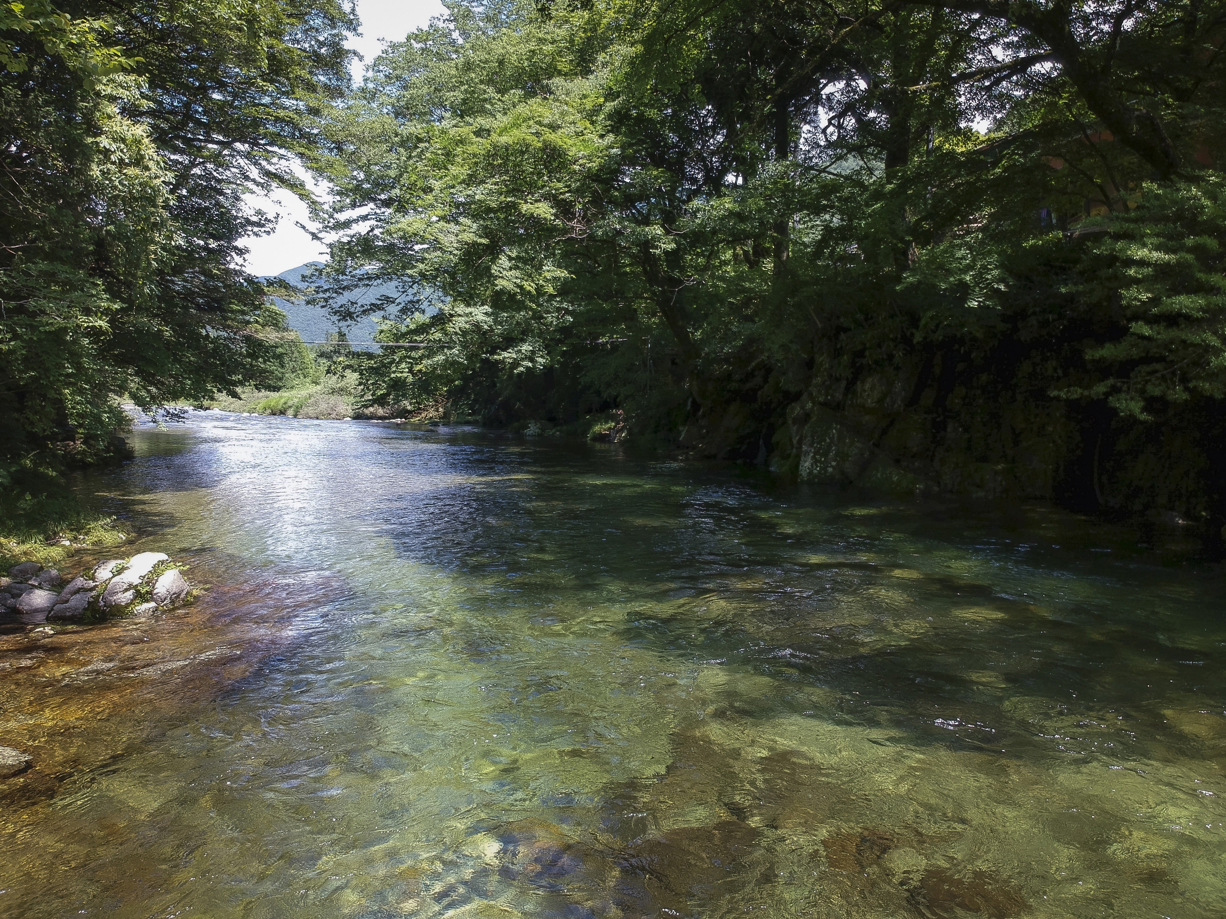 建物は木造建て、客室からは湯屋の山々と川底が透けてみえる清流が楽しめ、新しくはないですが、どこか懐かしいあたたかさでほっこりできるような宿です。