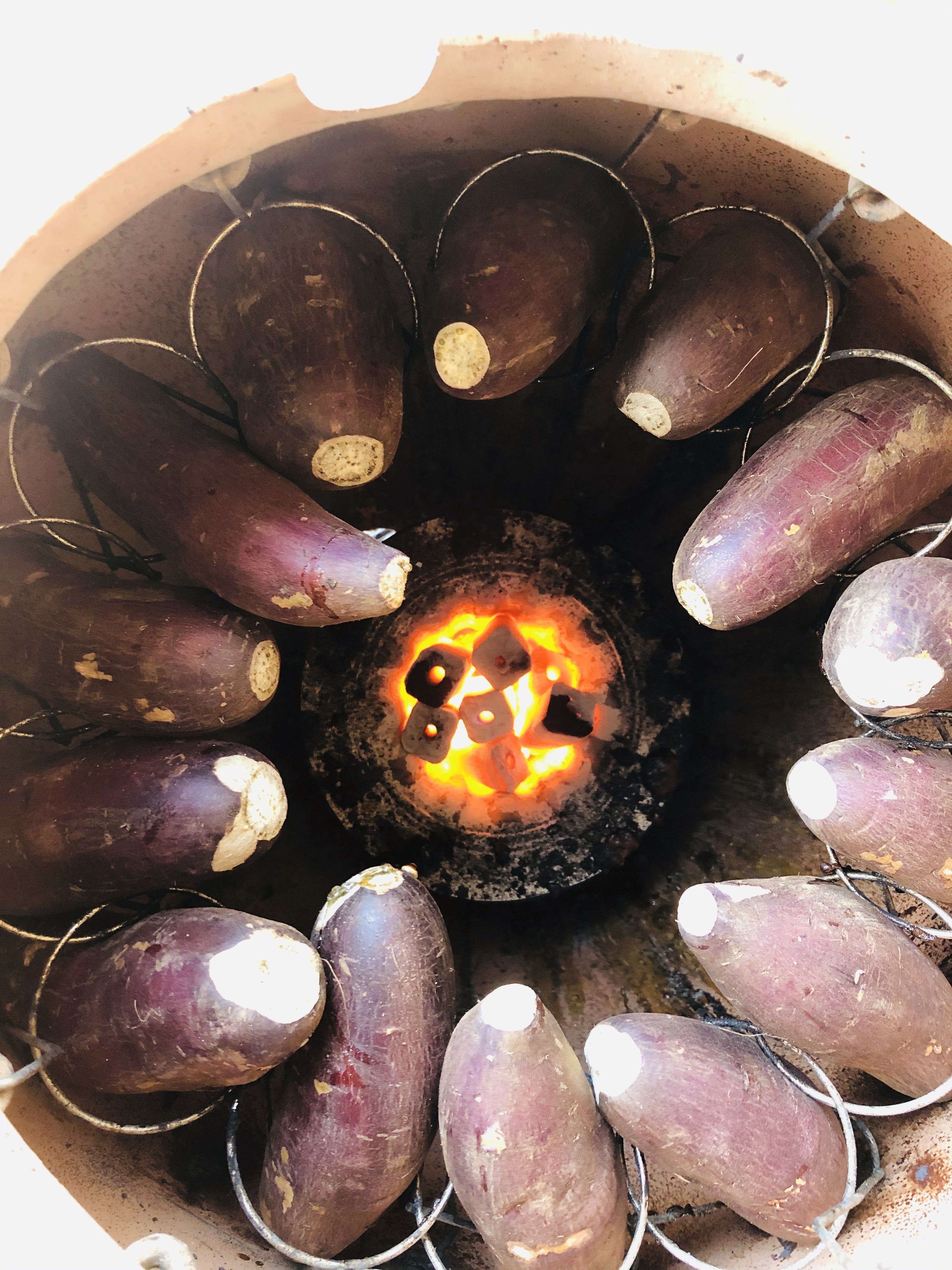 炭の火起こしから始まり、お芋が焼き上がるまでに1時間半〜2時間以上かかります。