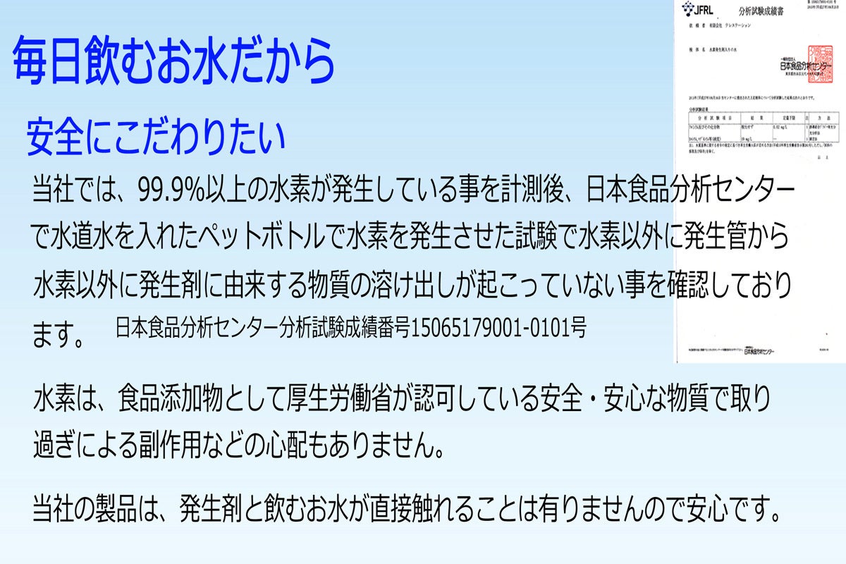 本品は、日本食品分析センターで水道水を入れたペットボトルに水素を