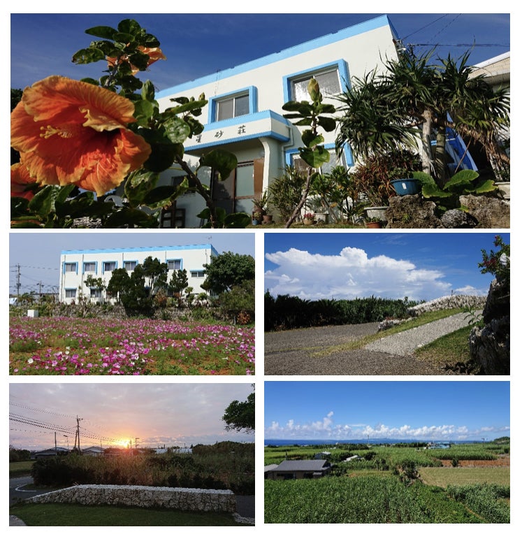 星砂荘は島の東に位置し、百合が浜に行ける「大金久海岸」や島で一番早く夜が明ける「赤崎海岸」が徒歩10分~30分圏内にあります。宿の周りにお店などはありませんが、宿の主人に「行ってらっしゃい」と見送られ一歩外を出れば、毎日表情を変える与論の青い海にざわわ、ざわわと揺れるサトウキビ畑が目の前に広がり、宿に戻ってきた時には女将が「おかえりなさい」と迎えてくれる、まるで実家に帰ってきたような気分になれるアットホームな宿です。