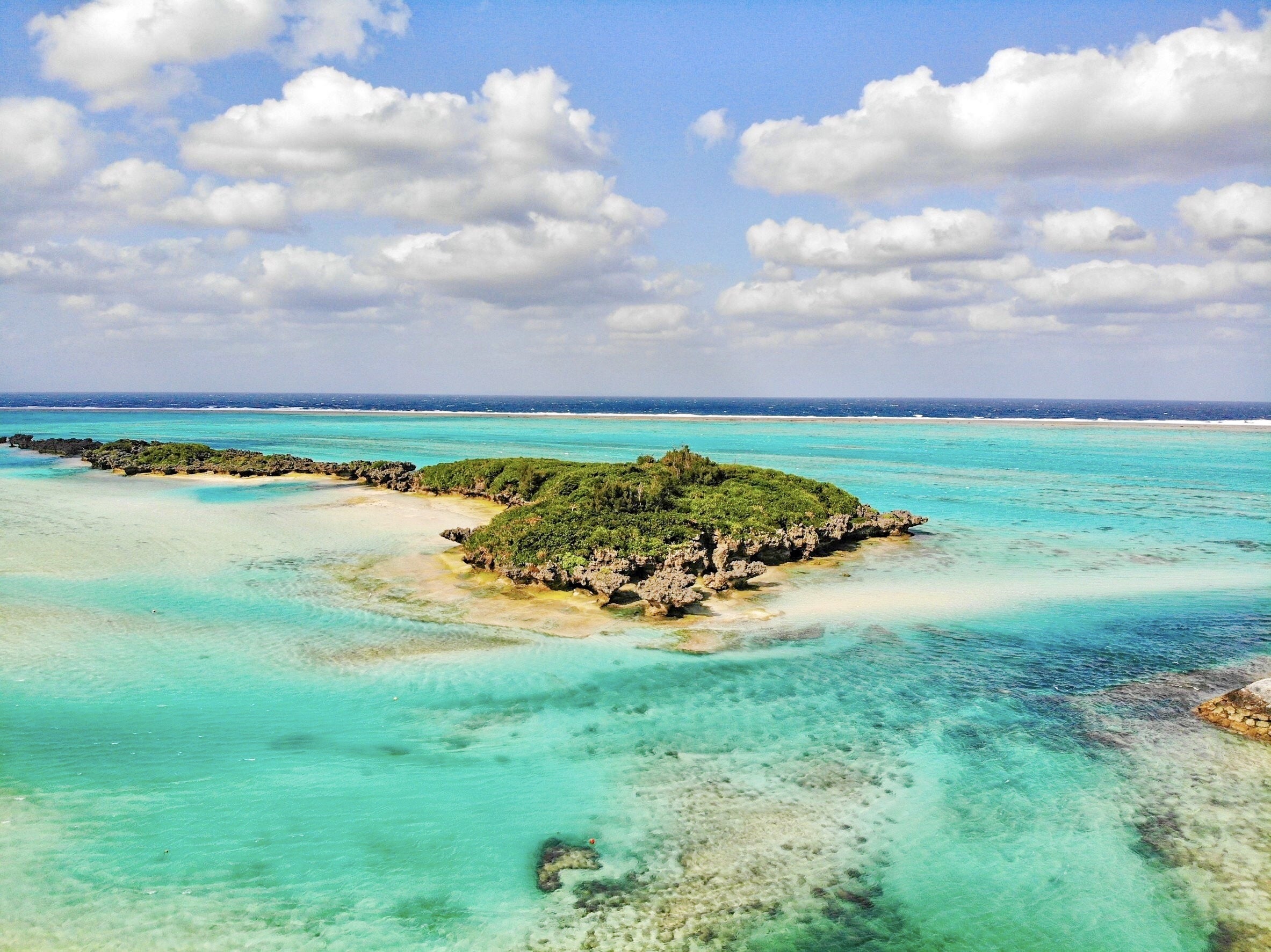 →与論島から那覇空港まで飛行機を使うと、なんと約40分で移動することができます。離島便なので少しコストは嵩みますが、飛行機からしか見ることのできない与論島の姿は絶景です。