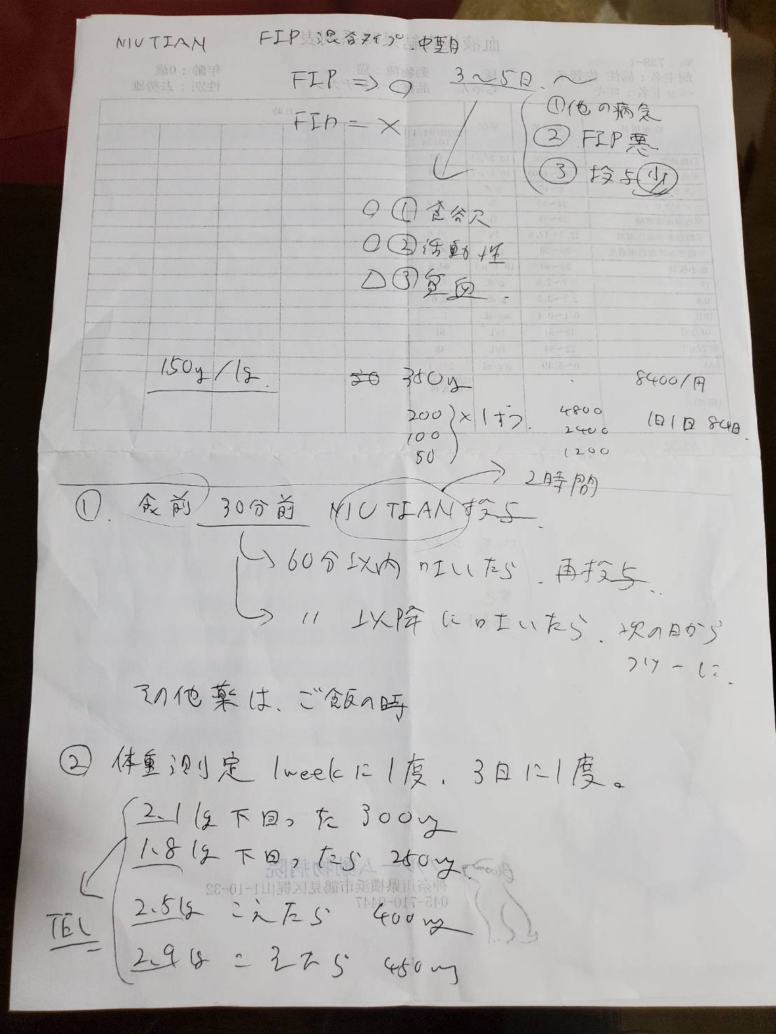 FIPは発症後、投薬をしないと