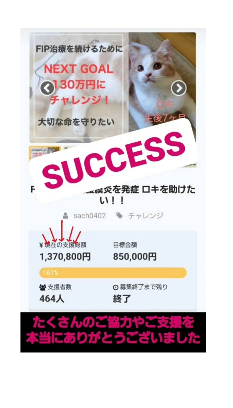 達成することができたのも皆様の温かいお気持ちと