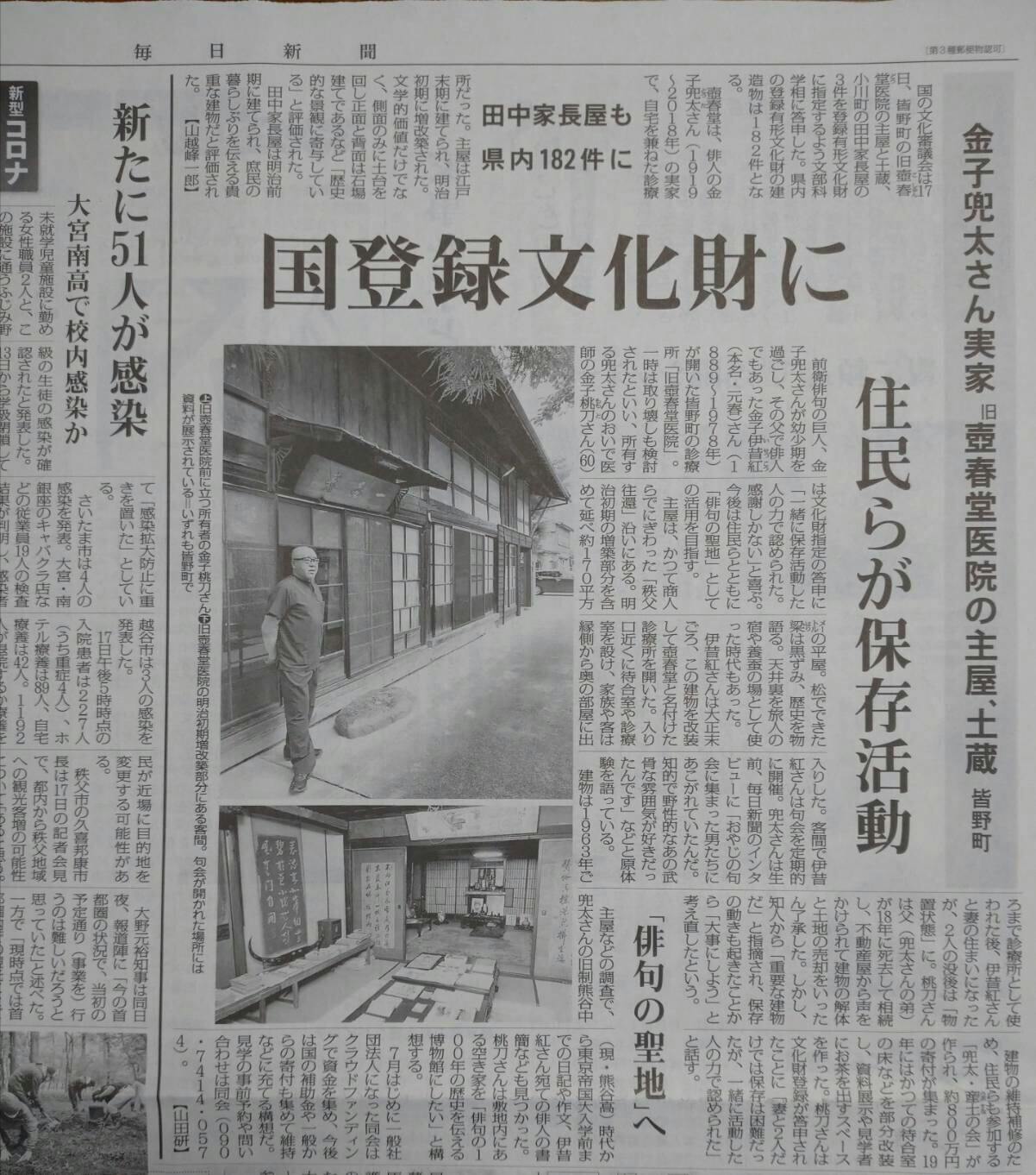 先週17日、国の文化審議会が文部科学相へ登録を答申しました。母屋は歴史的景観に寄与しているだけでなく、文学的価値があるものとしても評価されました。