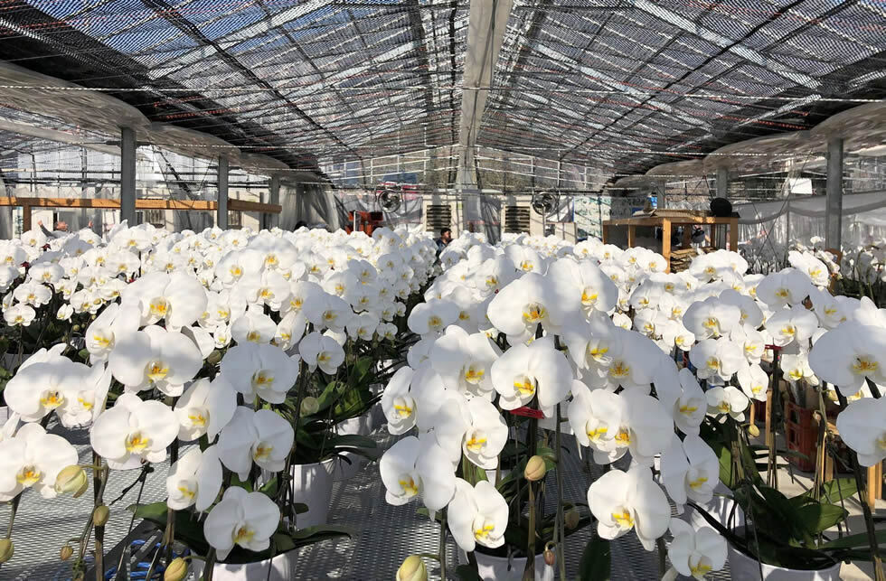 普通の胡蝶蘭は栽培農家から花市場へ送られ、町のお花屋さんが仕入れて注文に応じて届けます。