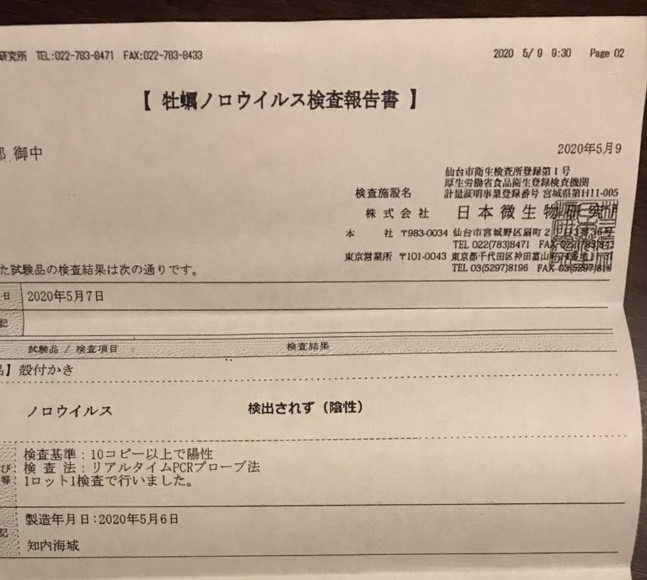 牡蠣は毎回検査済安心安全の生牡蠣です。