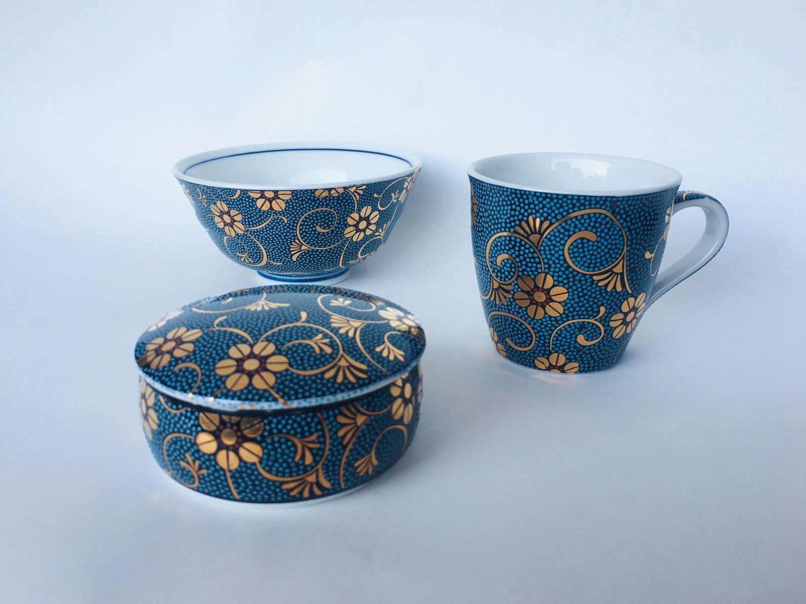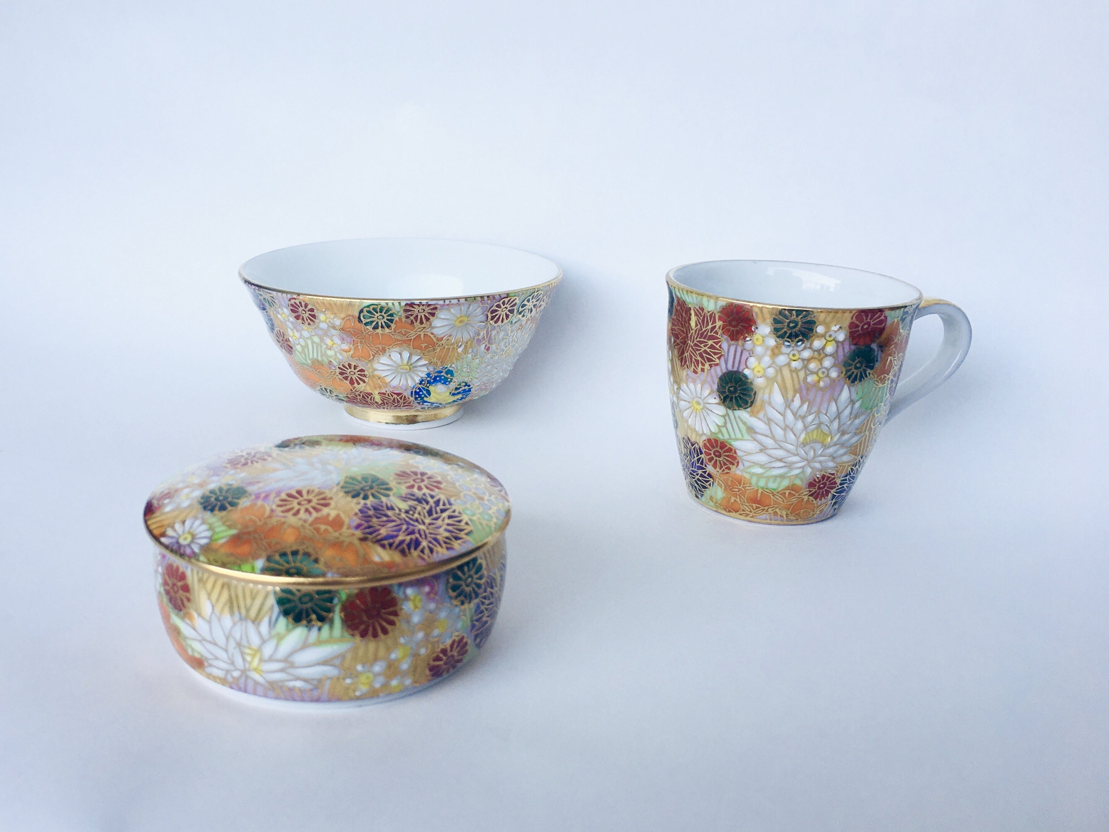 ⑤【金花詰(きんはなつめ)ミニマグ+ミニ碗+蓋物のセット】