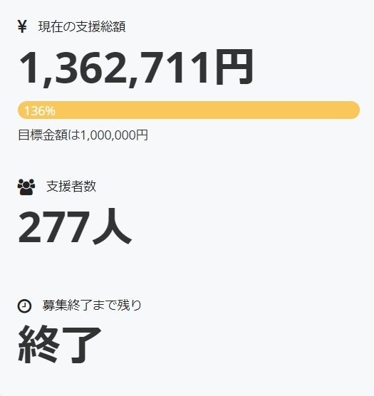 5月26日のプロジェクト終了日まで、引き続き、応援よろしくお願いします!