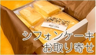 ホームページのトップ画面をスクロールしていくと【シフォンケーキお取り寄せ】というところがあるので、クリックしてみてください。(PCの方はトップページ画面をすこしスクロールしていただき右側です)