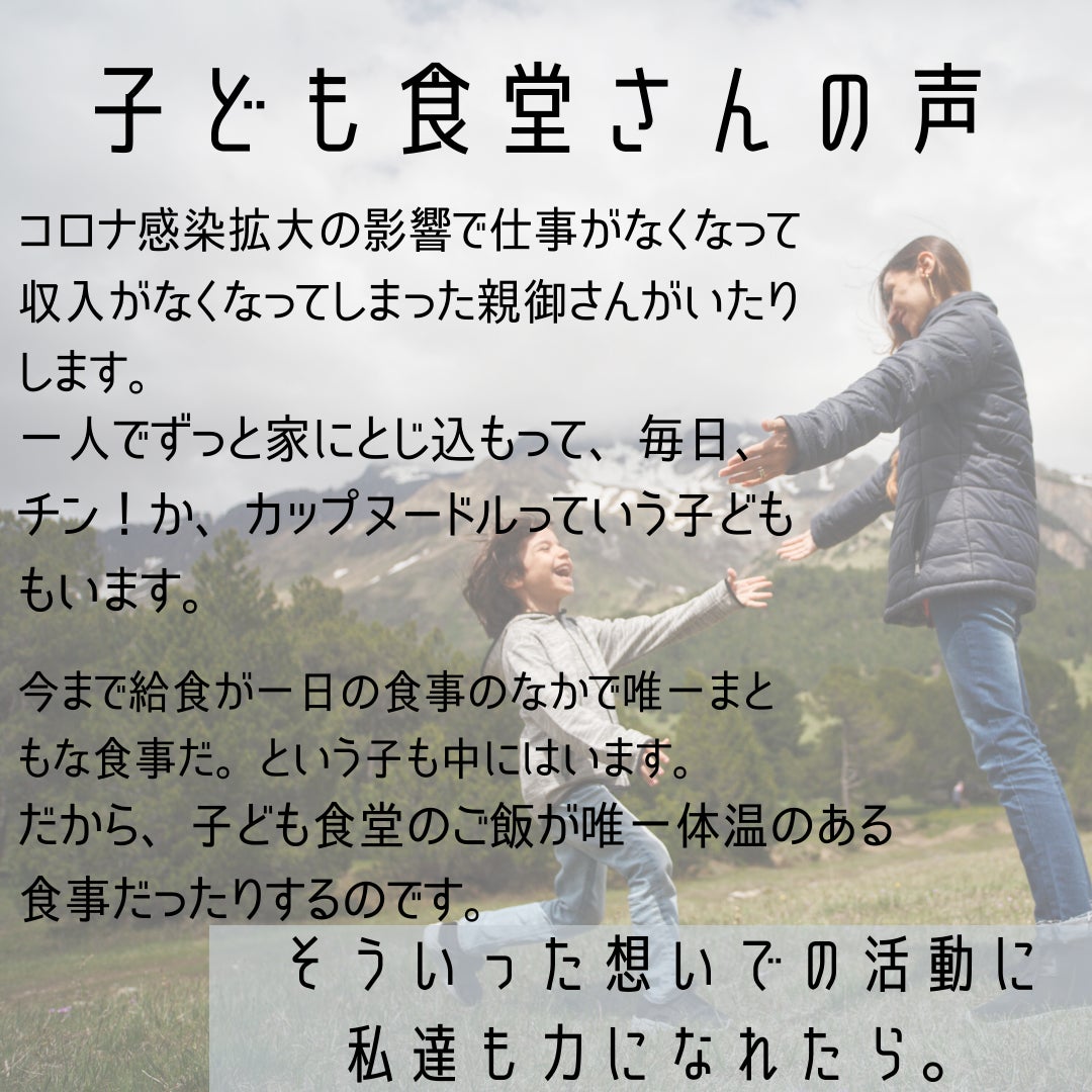 既に現在、『子ども食堂』や『学童』からお弁当の支援の依頼を受けています。ですが、先にも申し上げた通り、やはり私達だけの力では支えられる人数に限界があります。