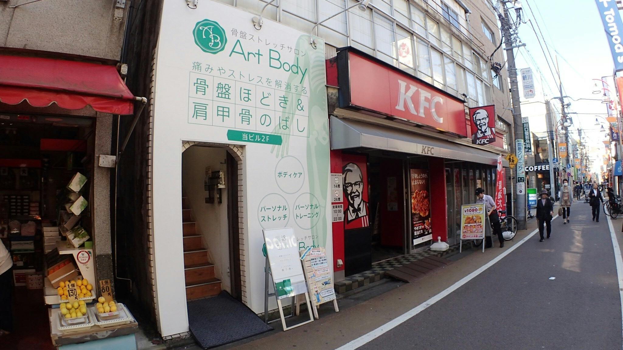 骨盤ストレッチサロンArtBody学芸大学店は、学芸大学駅西口徒歩1分の立地にて