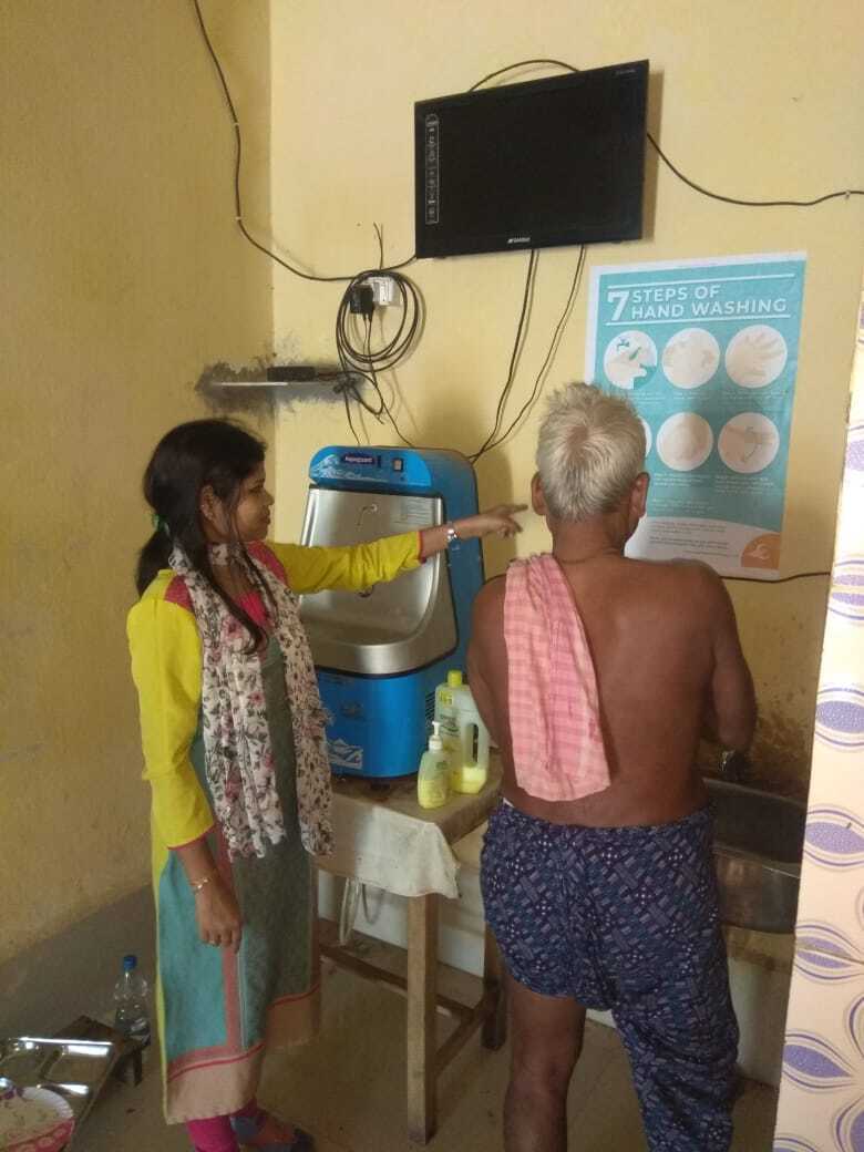 現在は、コロナで国全体がロックダウンされている中、路上にいるしかなかった人たちも一時的に収容しています。病気のこと、病気の防ぎ方や手洗いの方法についても教えています。