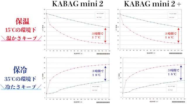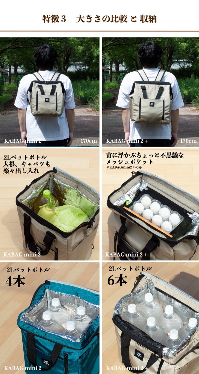 そこに、みなさまのご意見を踏まえて改良した、3WAY仕様の保温・保冷両用コンパクトエコバッグ「KABAG mini2」、「KABAG mini 2 +」になります。