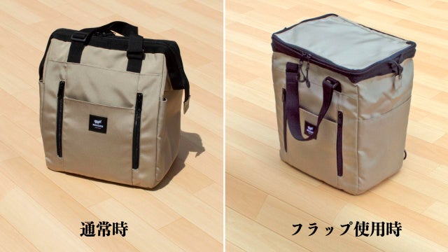 用途に合わせて容量UP!少量ならば、そのままでOK。たくさん詰め込みたいときには、容量を拡張し、フラップで閉められるジッパー仕様。