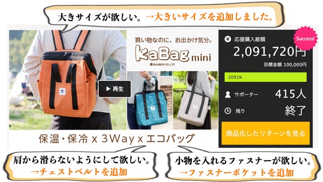 KABAGはこれからも、ユーザーの方々と直接つながれるクラウドファンディングを通して、「一緒につくる」商品開発を続けていきます。