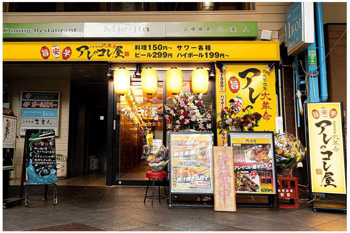 現在、私達は”大衆居酒屋酔っ手羽”、”大衆居酒屋大革命アレやコレ屋”、”餃子研究所”を運営しております。