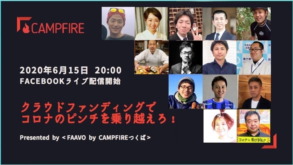 2020/06/15 12:20本日20時よりオンラインイベントに参加いたします!▼イベント概要CAMPFIREにおいて現在全国で最も多くの支援金額を集めている茨城県で、クラウドファンディングに地域の再建をかける仕掛け人たちが、地域を救うプロジェクトの立て方や資金の集め方について、行政、商工会議所、地域おこし協力隊、店舗経営者など様々な立場から語ります。※ZOOMでの対談をFacebook Liveで配信します。※当日まで、出演者の皆さんとそのプロジェクトの情報を日々更新してまいります。興味を持っていただいた方は、こちらのページの参加予定か、興味ありをクリックして最新情報をお受け取りください。▼ライブ配信日時6月15日(月) 20時開始※1時間半程度の配信を予定していますが、延長する可能性もあります。▼視聴方法開始時刻になりましたら、CAMPFIRExTsukubaのページ�をご訪問いただくと視聴できます。いいね!でページをフォローいただけますと、開始前に通知を受け取れます。ページからは今後も様々なプロジェクトの情報を配信していきますので、この機会にフォローいただけますと幸いです。https://www.facebook.com/campfire.tsukuba/▼現在公開中の、地域全体で取り組んでいる地域の応援プロジェクトとその仕掛け人(当日の出演者)の皆さん ※プロジェクト公開順●大洗町観光の町・大洗のお店を救え!『大洗「おかえり」ミッション』!https://camp-fire.jp/projects/view/267599一般社団法人 大洗観光協会 会長 大里 明さん株式会社ハイド&ルーク 代表取締役 廣岡祐次さん●つくば市新型コロナウイルスに負けない!つくばの飲食店応援プロジェクトhttps://camp-fire.jp/projects/view/267922つくば市役所経済支援室 高瀬 章充さん●龍ケ崎市【コロッケが一生食べられる券・ころパス】コロッケで龍ケ崎のまちを元気にしたい!https://camp-fire.jp/projects/view/257703龍ケ崎市企画課 小室 敦さん龍ケ崎をコロッケで元気に実行委員会 酒井 一さん●牛久市コロナに負けるな!牛久の飲食店を応援しよう<うし食えスト>https://camp-fire.jp/projects/254013/NPO法人ちゃんみよTV 代表 綾部 みよさん●桜川市桜川市のお店を「未来のお買い物」で応援しよう!〜先買い応援プロジェクト〜https://camp-fire.jp/projects/view/272021桜川市総合戦略部ヤマザクラ課地域商社設立準備室長 近納裕政さん桜川市商工会青年部 桜川市のお店を応援しようプロジェクトメンバー/桜リビング(株)代表取締役 仲田 克美さん●結城市結城の飲食店を救え!商品券で飲食店応援プロジェクト!!結城むすびめしhttps://camp-fire.jp/projects/view/271028結いプロジェクト 野口 純一さん●笠間市笠間のお店を未来に残したい!笠間市飲食店未来プロジェクトhttps://camp-fire.jp/projects/view/273218笠間市地域おこし協力隊 川島 拓さん●茨城県魅力度ランキング7年連続47位!最下位のまま終らない!このまま力尽きたくない!https://camp-fire.jp/projects/view/263375茨城県ホテル旅館生活衛生同業組合青年部 部長/割烹旅館 城山 女将 新名 寛子さん茨城県ホテル旅館生活衛生同業組合青年部 クラウドファンディング委員長/アーバンホテルつくば 取締役 塚本 忍さん●筑西市コロナとの共存!食と街の力で【ちくせい元気玉】プロジェクト!!https://camp-fire.jp/projects/view/281242/下館商工会議所青年部 正根寺 和人さん●古河市新型コロナに負けるな!古河の飲食店を応援プロジェクト!!https://camp-fire.jp/projects/view/256759株式会社つくば食品 代表取締役 八巻 大介さん※欠席 配信ではプロジェクトのみご紹介させていただきます。※こちらのプロジェクトは終了しています。※現在茨城県内では、CAMPFIREから他にもたくさんのコロナの被害を救済するプロジェクトが立ち上がっていますが、こちらのイベントでは市町村単位で立ち上がったプロジェクトのプロジェクトオーナーの皆さんにご出演いただきます。▼ゲストスピーカー●桑原 務さん茨城県よろず支援拠点コーディネーター※中小企業等の資金繰りや事業計画の策定を中心に、創業やクラウドファンディングの支援も数多く手掛けていらっしゃいます。●太田 碧くん(高校生ゲスト!)ひたちマチラボidea代表・日立市発信YouTuber※高校生と地域の人たちを繋ぐ場を作ったり、YouTubeで大好きな日立を発信したりされています。▼是非ライブ配信を視聴していただきい方・コロナで損失を受けた地域に支援を集め、何とか地域を元気にしたい方・ご自身の地域でもプロジェクトを立ち上げたい方・他の市町村の動きに興味のある方・出演者の皆さんが立ち上げている、クラウドファンディングにはこれまで無かった新しい形の応援プロジェクトについて知りたい方・そうしたプロジェクトをご自身で仕掛けてかなりの実績を上げている地域のキーマンの方々のお話を聞きたい方・プロジェクトの立ち上げ方や支援を集めるノウハウを知りたい方・地域をクラウドファンディングで元気にする方法を知りたい方・今回のトピックスに限らずクラウドファンディングに興味のある方、相談先を探している方▼コンテンツ(仮)・各地のプ