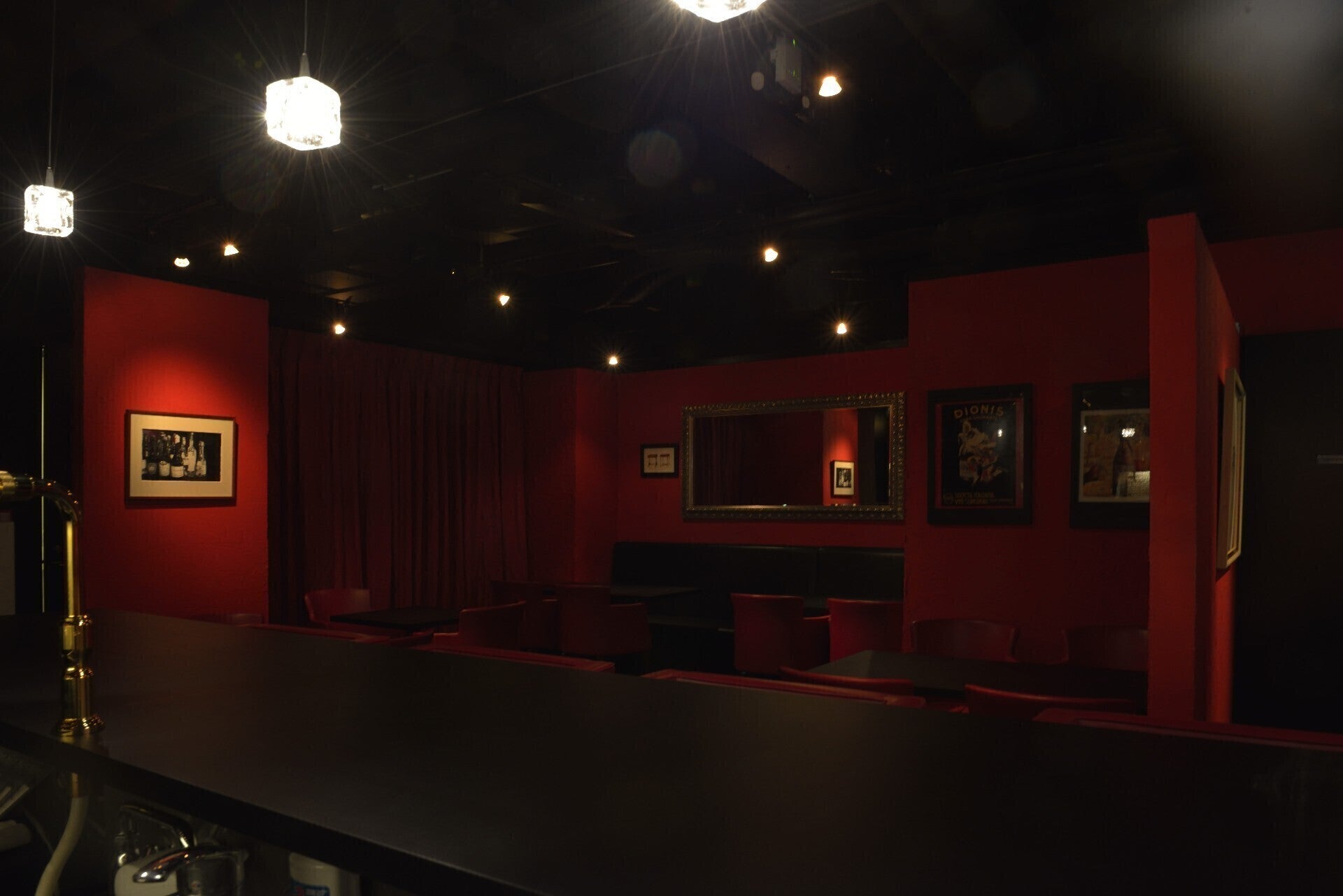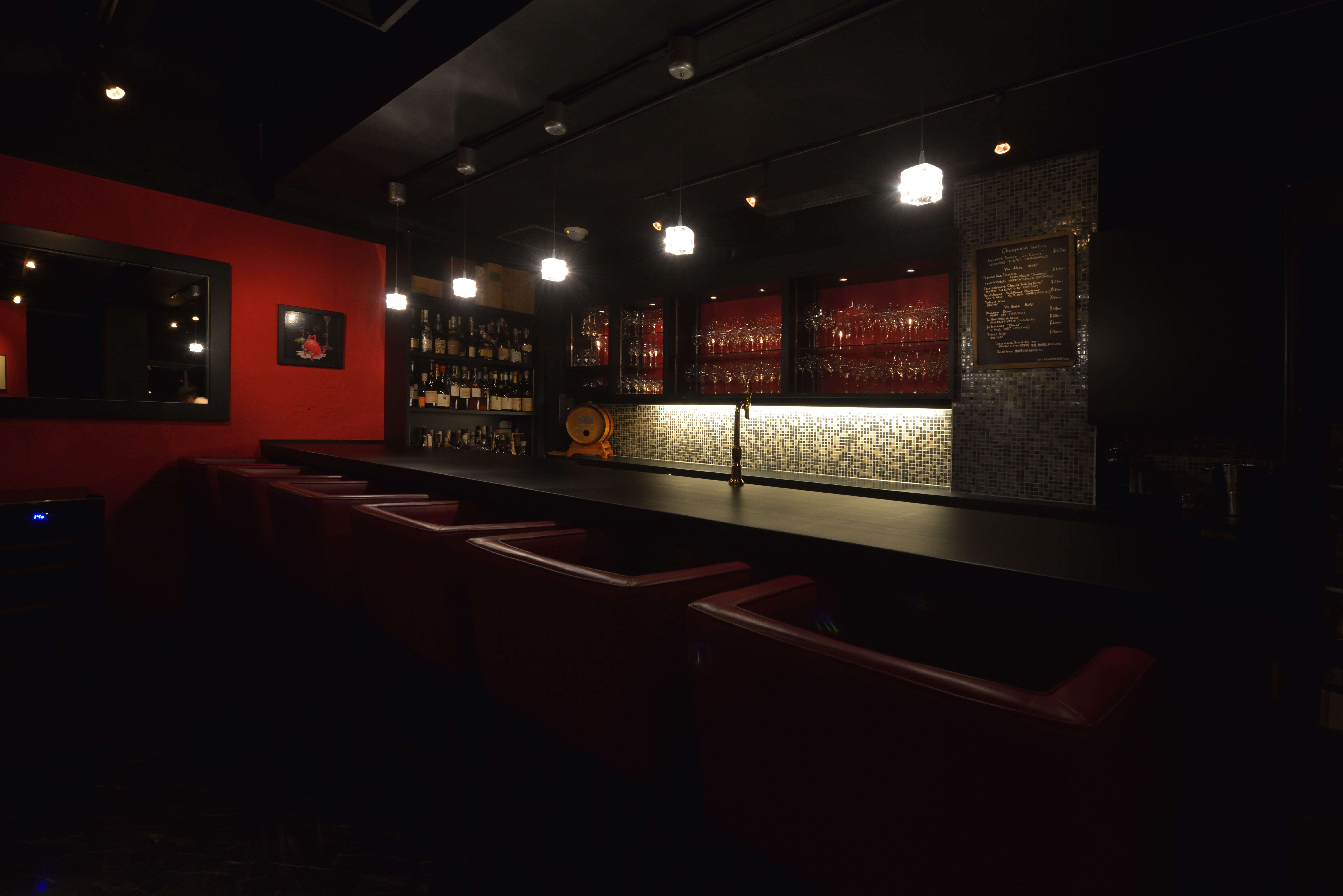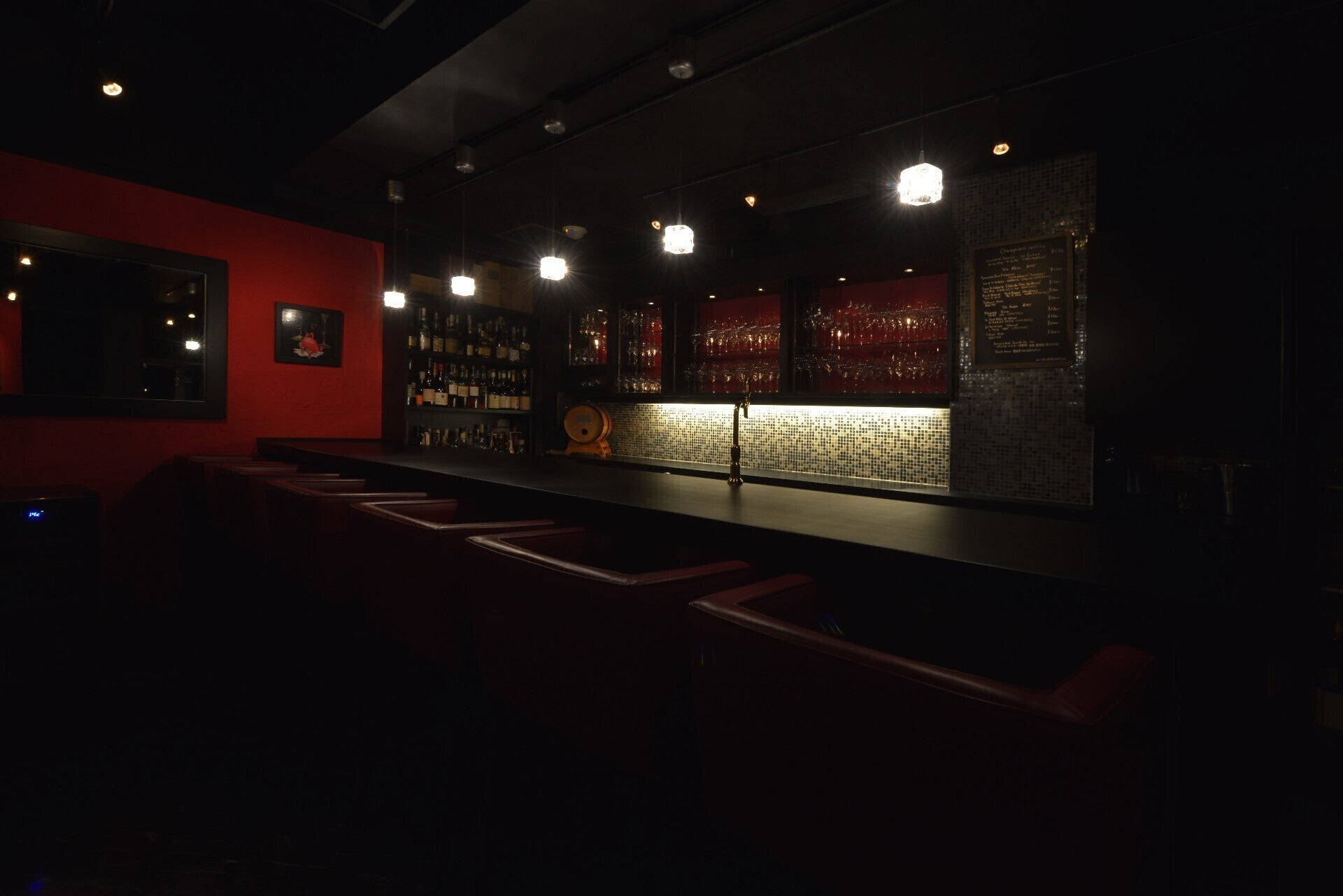 店内は赤と黒を基調にした落ち着いた静かな雰囲気のワインバーです。