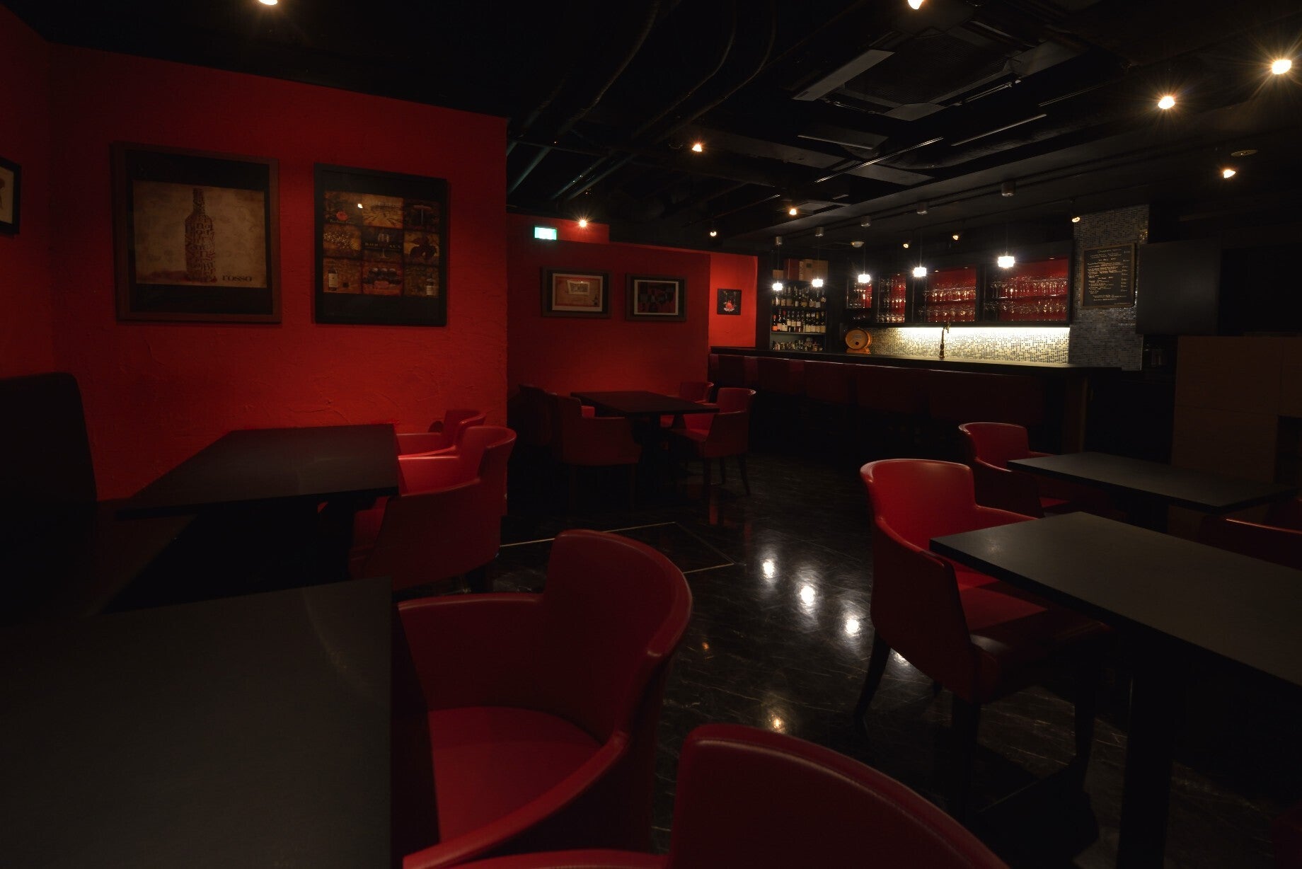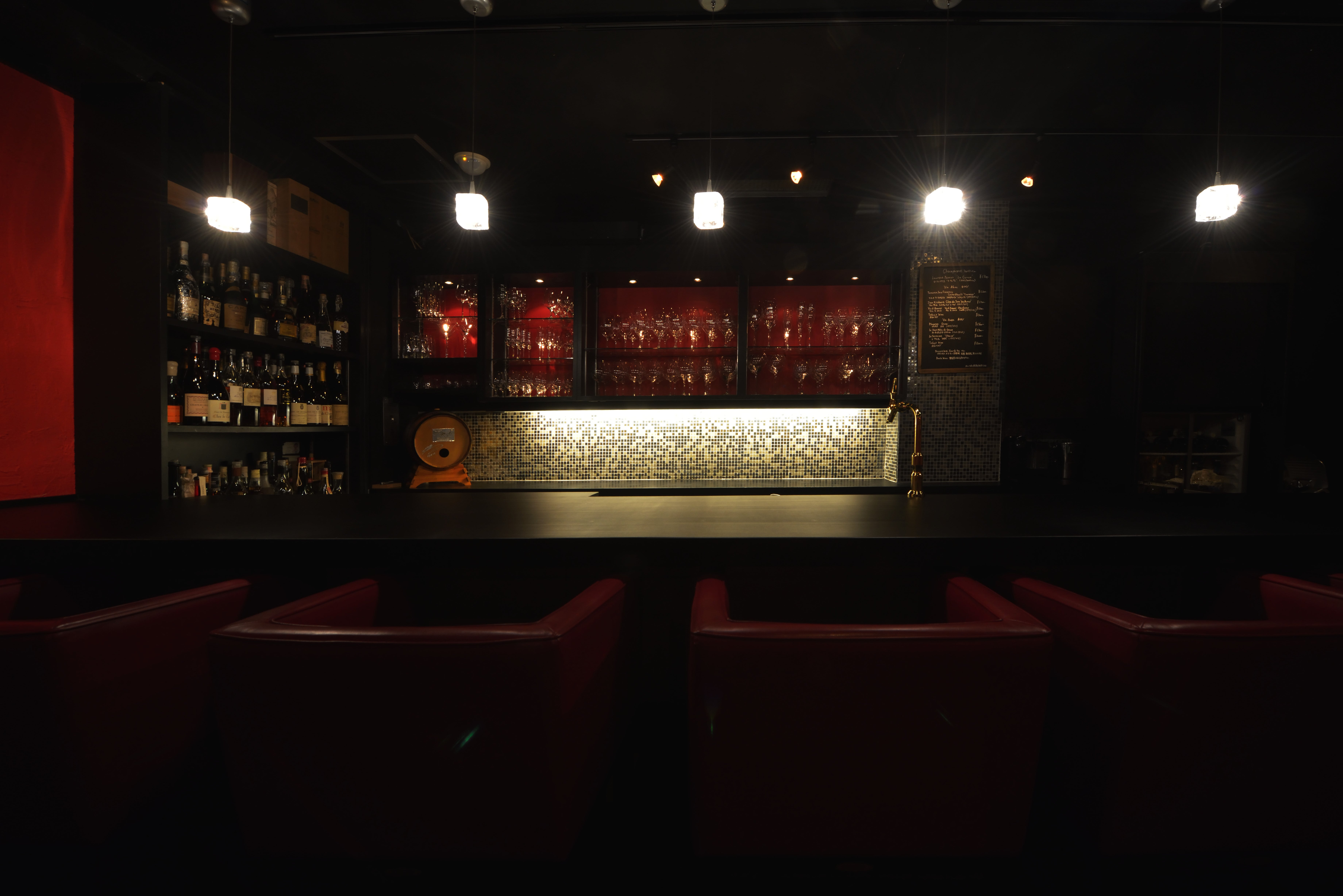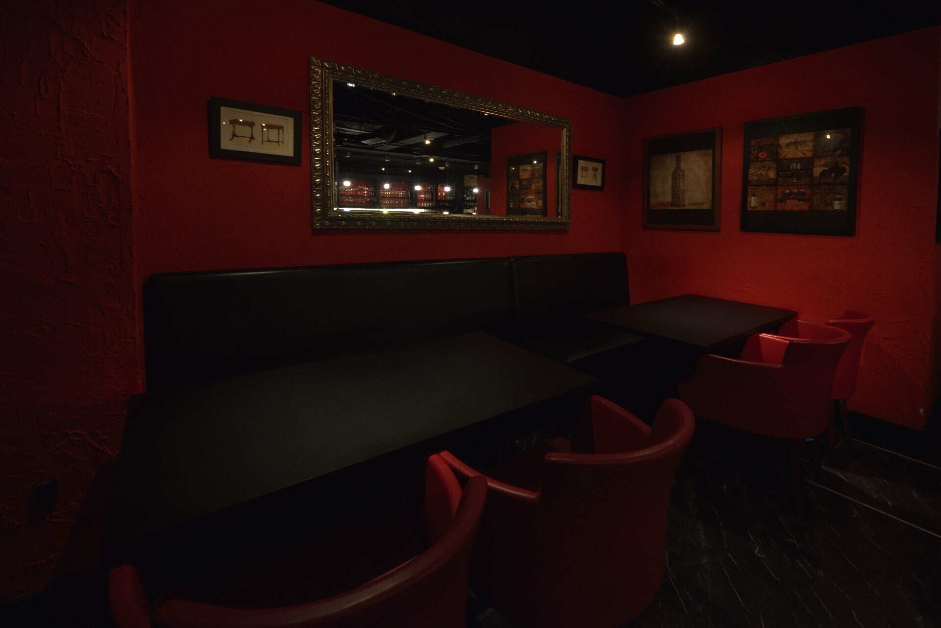 店内は赤と黒を基調にした落ち着いた静かな雰囲気のワインバーです。