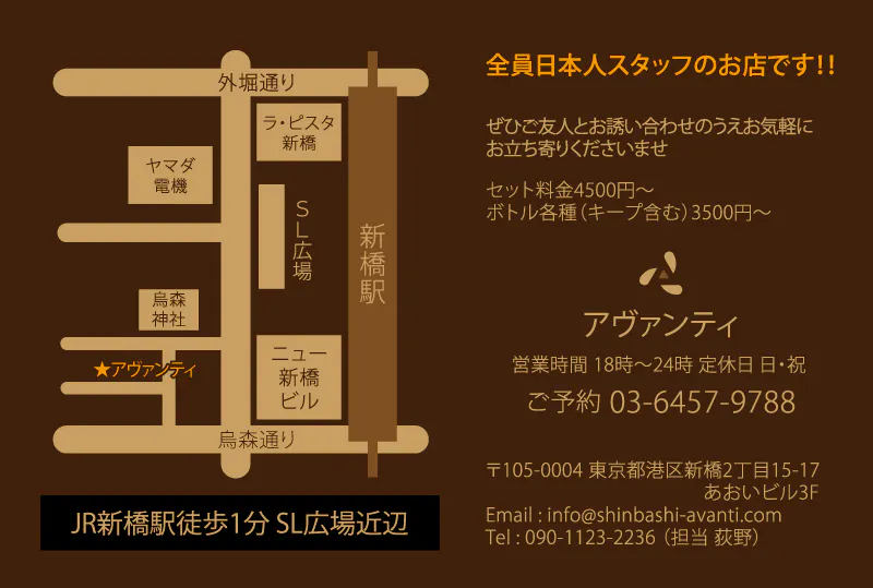 2015年11月にオープンし、今年で5周年を迎える、スナック新橋avanti(アヴァンティ)は、スタッフがとってもフレンドリー♪