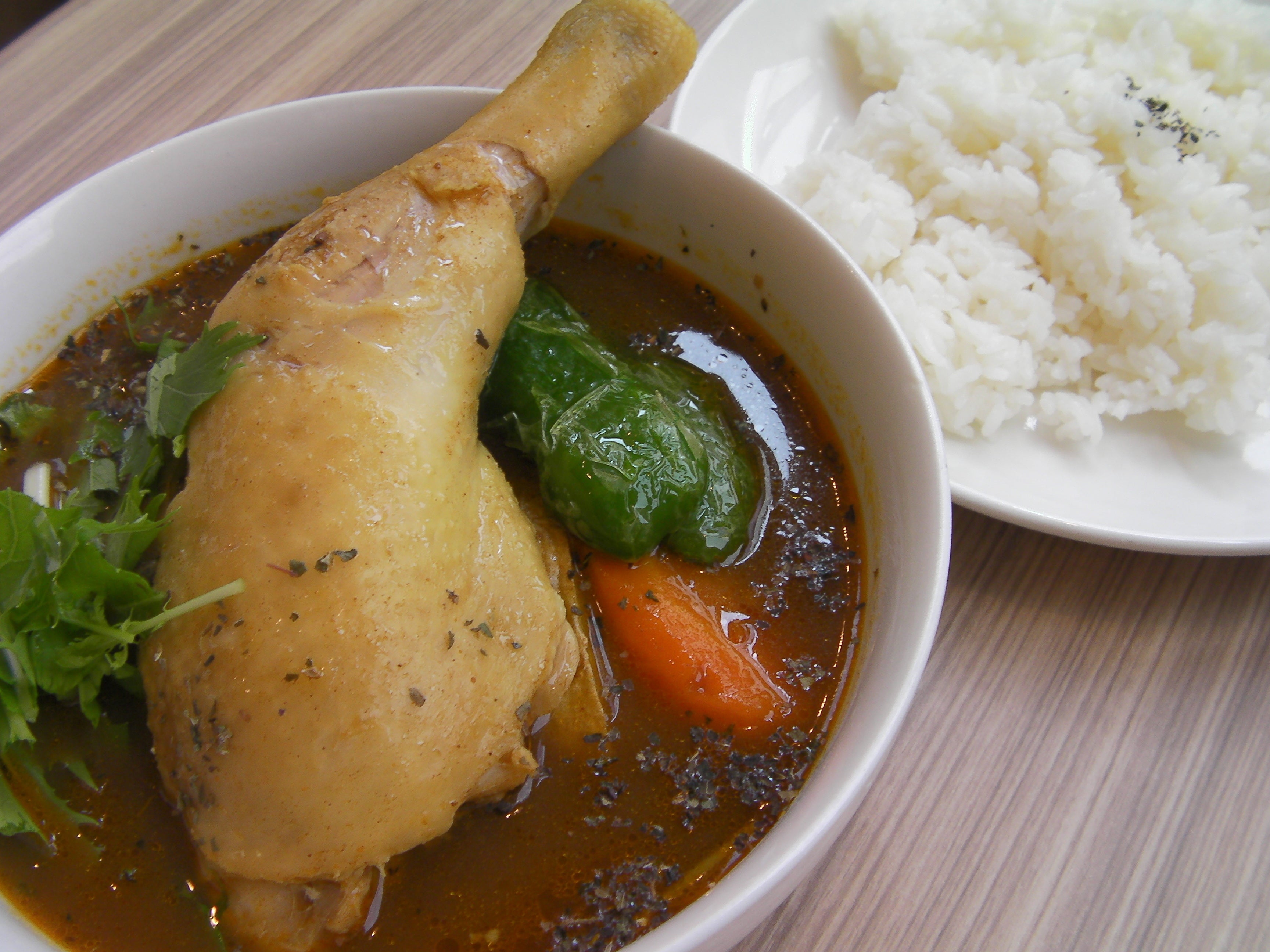 また、5000円以上のご支援をいただいた方には当店の特製スープカレーをクール便にてご郵送させていただき(画像は盛り付けイメージです。ライスは付きません)、3万円以上のご支援をいただいた方には当店の飲食券もお付けします。