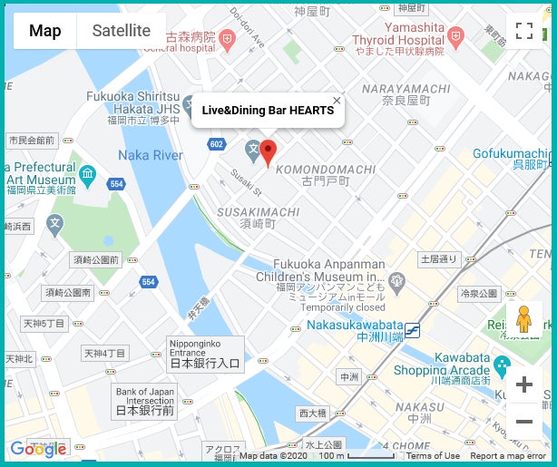 LiveBar HEARTS 博多区須崎町6-21B-1F 地下鉄中洲川端駅より徒歩5分