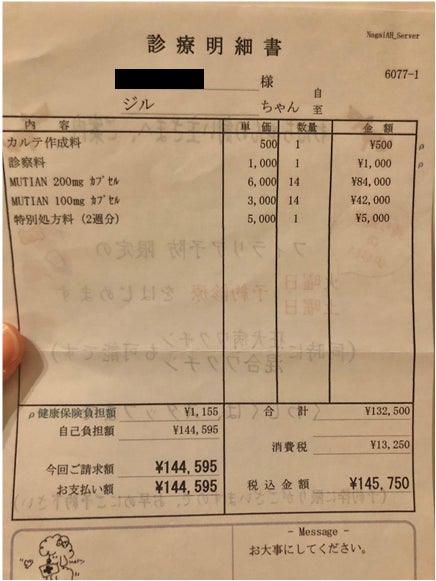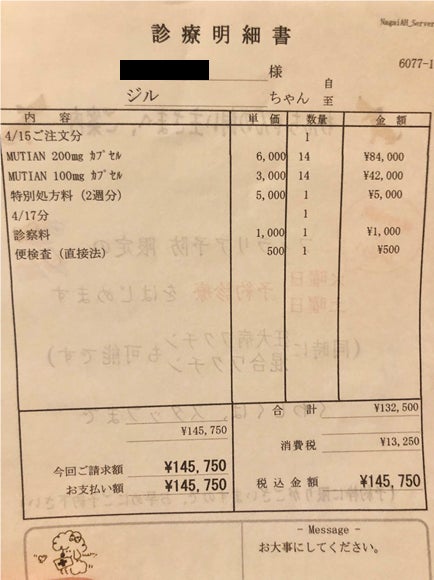 治療費に関しましては、これまでにMUTIANを4週間分処方していただきました。