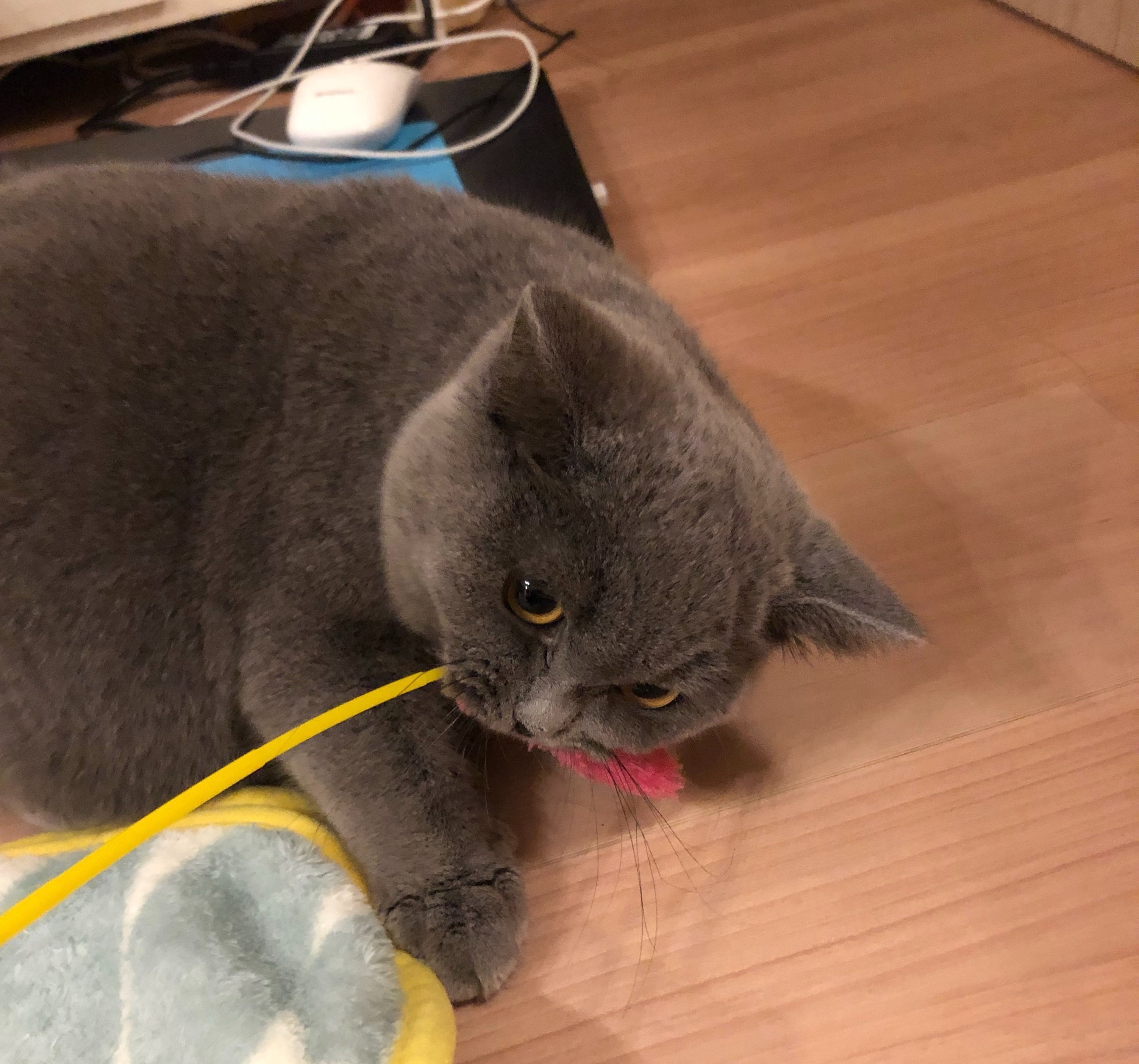 猫じゃらしで遊んだり、キャットタワーに登ったり、よく体を動かしています。