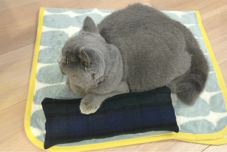 他に猫用けりけりをお渡しします。闘病中のジルくんはけりけりを出来る体力がなく、使用写真は掲載出来かねますが、腕おきや顎おきとして使ってくれています。猫を飼っていない方はヘッドレストクッションとしてもご利用いただけます。生地の指定は出来ませんので予めご了承ください。またデザインやカラーも異なる場合もございます。
